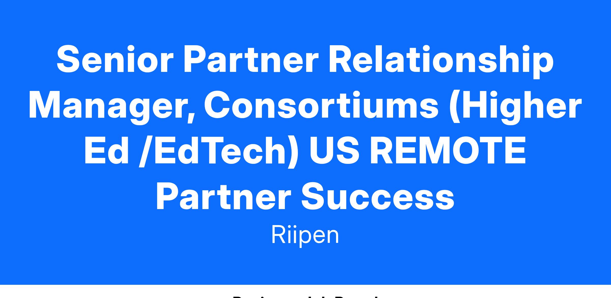 Riipen is hiring a Senior Partner Relationship Manager, Consortiums, to help us get there. This individual will be responsible for retention and growth of Riipen’s strategic higher education consortiums in the U.S.