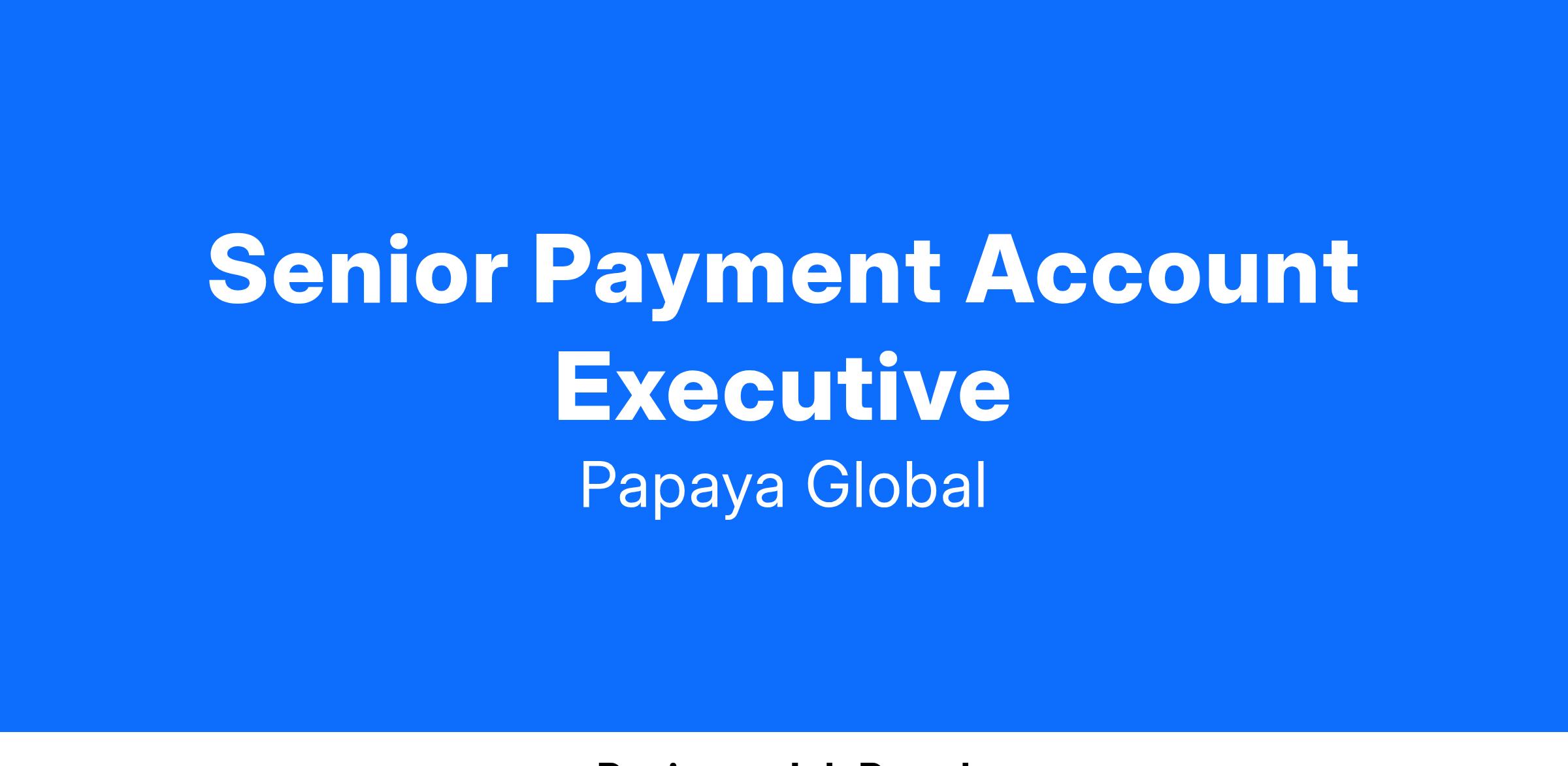 As part of our ambitious growth strategy, Papaya Global is in search of a Senior Payment Account Executive with a strong track record of building, nurturing, and growing partnerships and alliances in the global payroll, HR technology and business technology spaces.