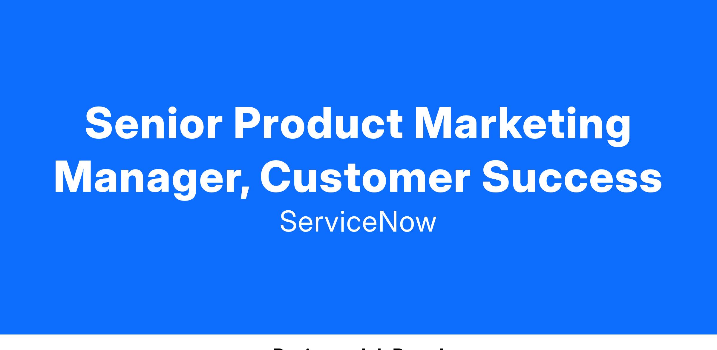 We are seeking a highly motivated, creative, and experienced Senior Product Marketing Manager, Customer Success to join ServiceNow’s Product and Solutions marketing team with a focus on Customer Success. In this role, you will be responsible for crafting compelling messages and celebrating ServiceNow’s commitment to our customers enduring success across the end-to-end customer journey from pre to post sale.