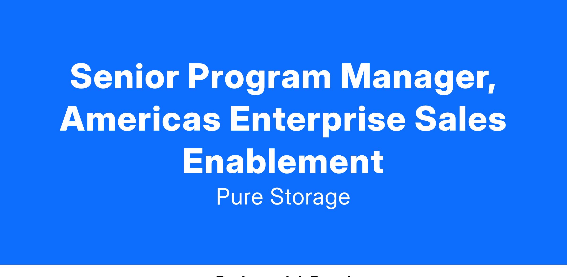 Pure Storage is looking for a Senior Program Manager, Americas Enterprise Sales Enablement with a proven track record of success in supporting enterprise account executives. In this role, you will act as a vital business collaborator, working closely with Americas sales leadership teams to introduce initiatives that ignite interest and improve account executives selling strategies within our global sales organization.