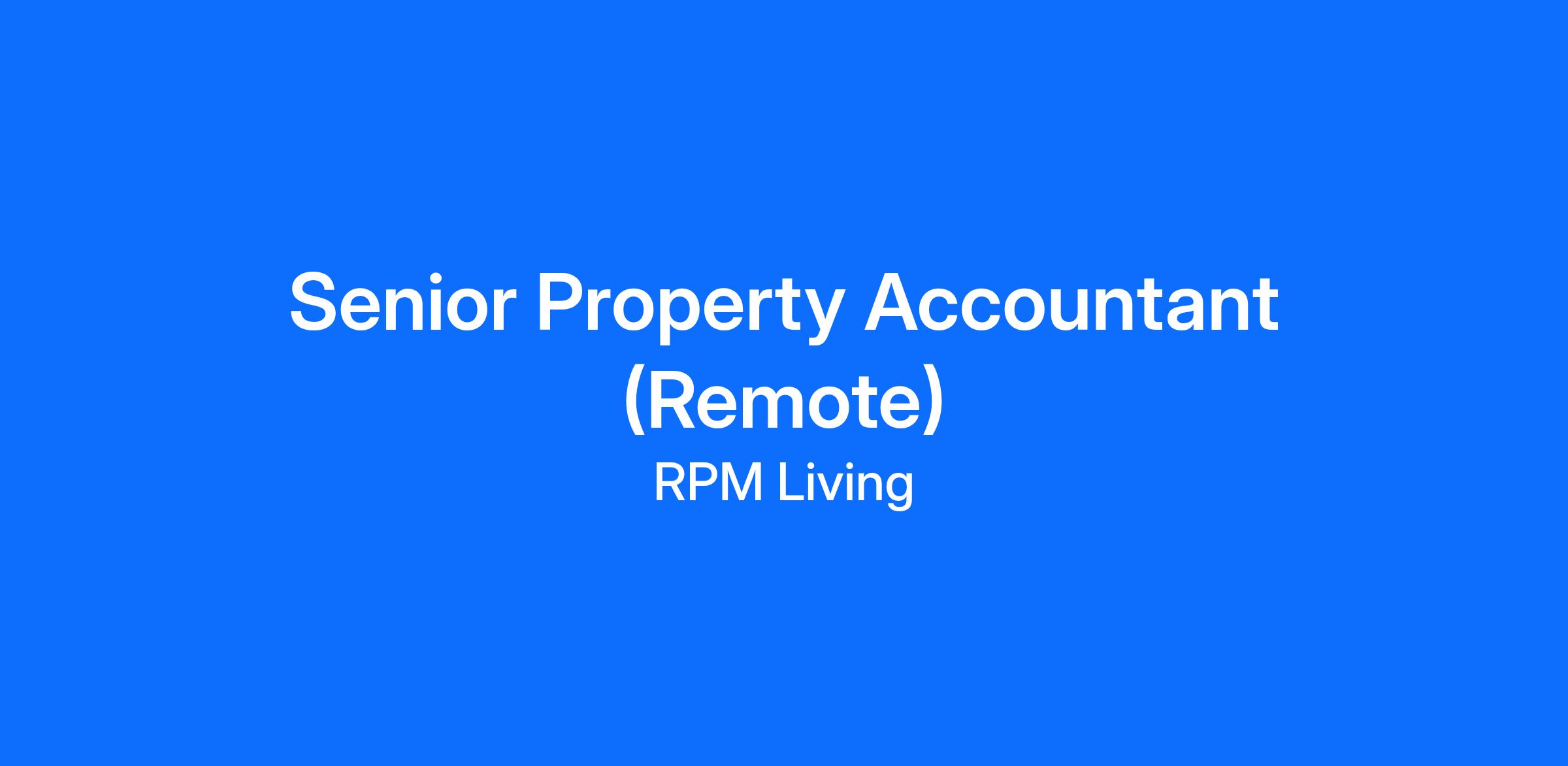 The Senior Property Accountant will be responsible for supporting accounting and financial reporting for RPM. This role will be responsible for financial reporting, cash management and the general ledger for a portfolio of properties.