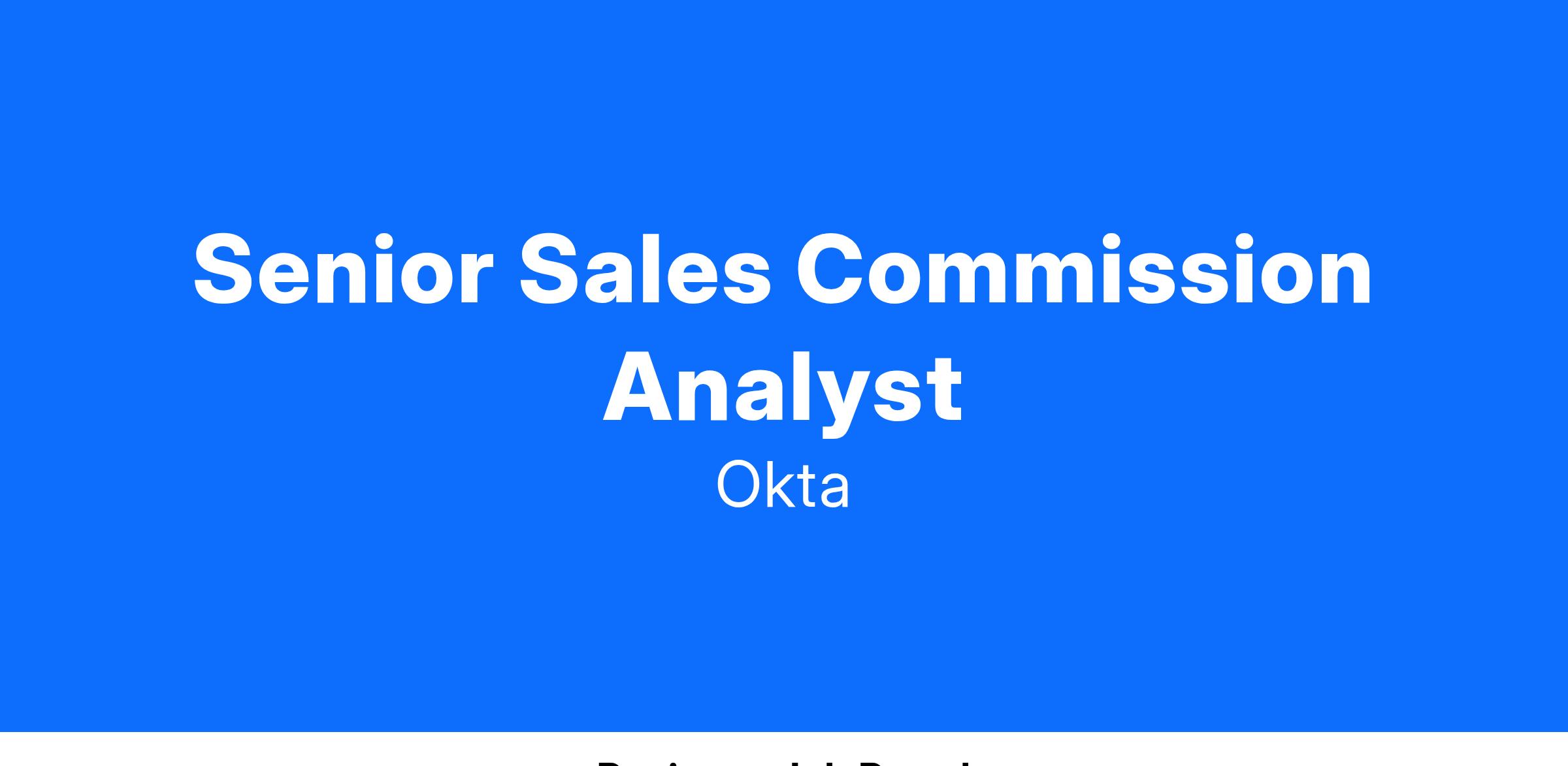 Okta is looking for a highly motivated Senior Sales Commission Analyst, to take a lead role in driving our sales commission plans, calculations, and audit accuracy globally. Reporting to the Commissions Operations Manager, this role will be working cross-functionally with the Sales Org, Sales Ops, Financial Planning & Analysis, Accounting, Payroll, Legal, and HR teams and will be responsible for commissions and bonus operations including variable compensations calculations, reporting, and analysis. The ideal candidate would be a self-starter who brings with them 4-6 years of Sales variable compensation experience.