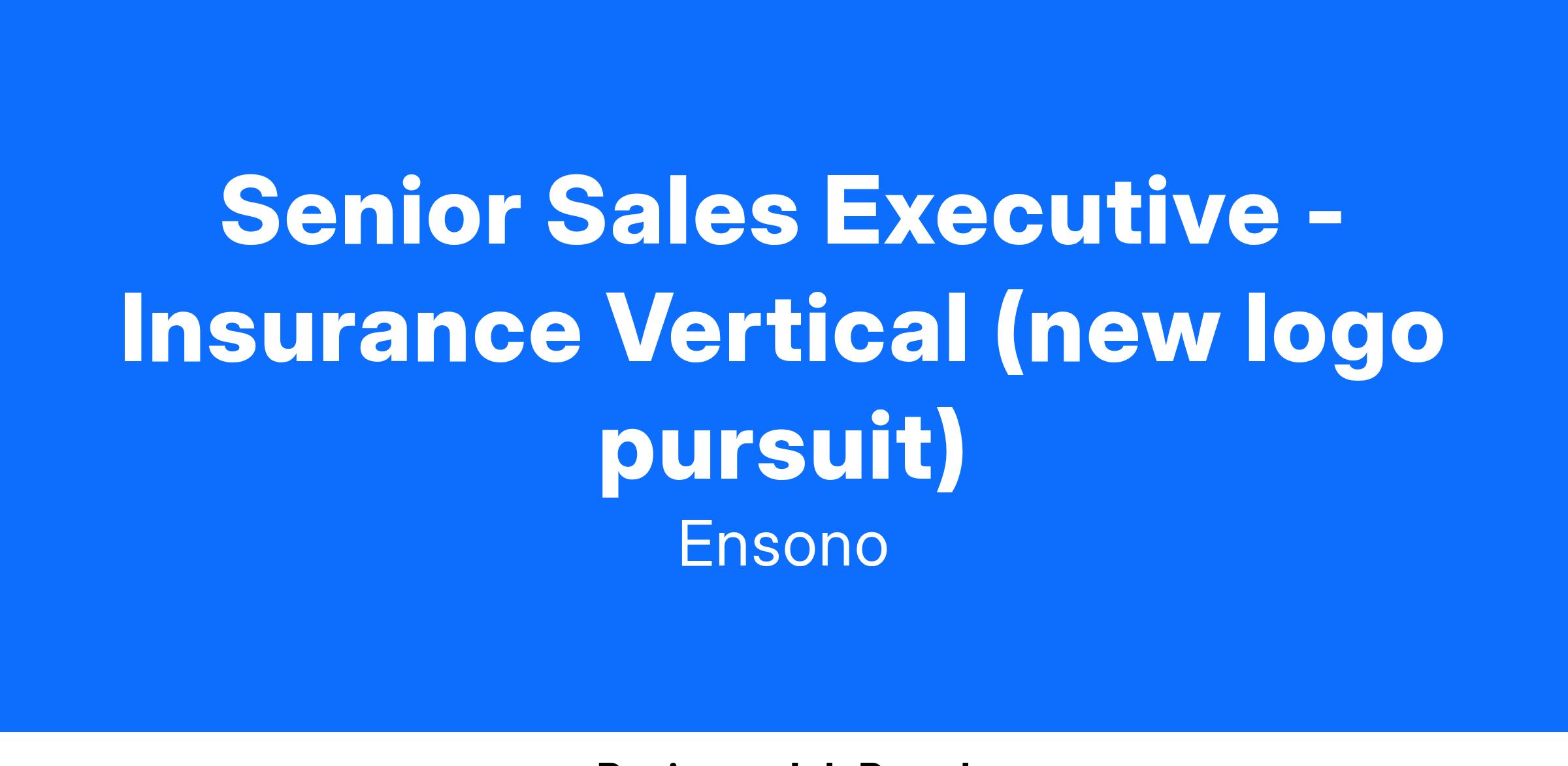 The Insurance (New Logo pursuit) Senior Sales Executive must have a proven track record selling “as-a-service” complex technology offerings that include managed services, public cloud, mainframe, security, and outsourcing into the insurance sector. He/she will have accountability for the creation of new bookings from the acquisition of new clients through a consultative engagement process. They must have a strong background in insurance technology, must be highly motivated and have the ability and desire to run their self-functioning sales unit by partnering with Sales Engineering, Operations, and Marketing within the business.