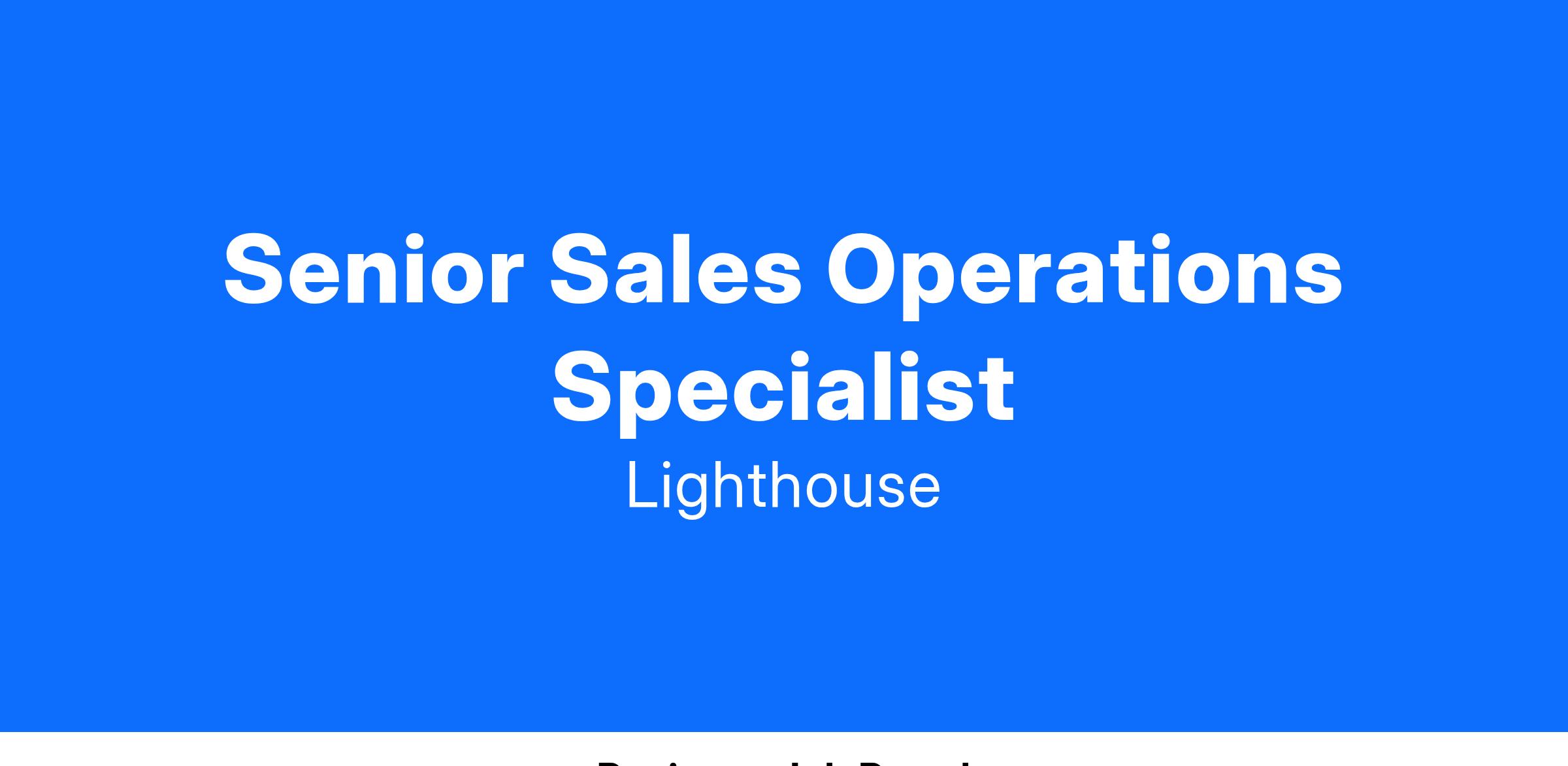 We are looking for a full-time Senior Sales Operations Specialist. As Senior Sales Operations Specialist, you will contribute to Lighthouse’s success through providing world-class support to the sales function, through accurate and timely execution of all customer administration. We are looking for someone who is able to contribute to create and support sales strategies to capitalize on revenue opportunities within the organization. Furthermore, this team member will also have the ability to make systematic changes to improve results and data mine, track, compare, and communicate reports. In this role you will be reporting to our Sales Operations Team Lead. The ideal candidate will be based in Dallas, TX or Denver, CO and have the ability to travel to the office 2-3 times per week.