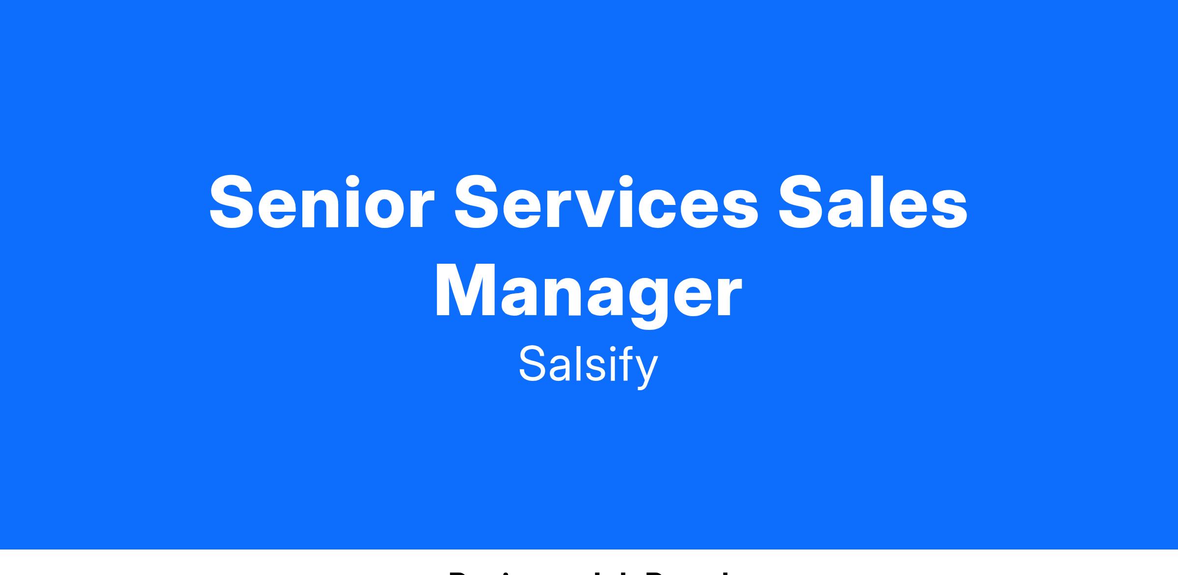 As a Senior Services Sales Manager, you will play a critical role in driving the growth of Salsify’s Professional Services business. You will use your sales acumen and experience in professional services to build relationships with prospects and customers, identify opportunities, and manage the end-to-end sales process of services engagements. You will work collaboratively with cross-functional teams, including Sales, Customer Success, and Solutions Architecture, to align service offerings with customer needs, negotiate contracts, and close deals.