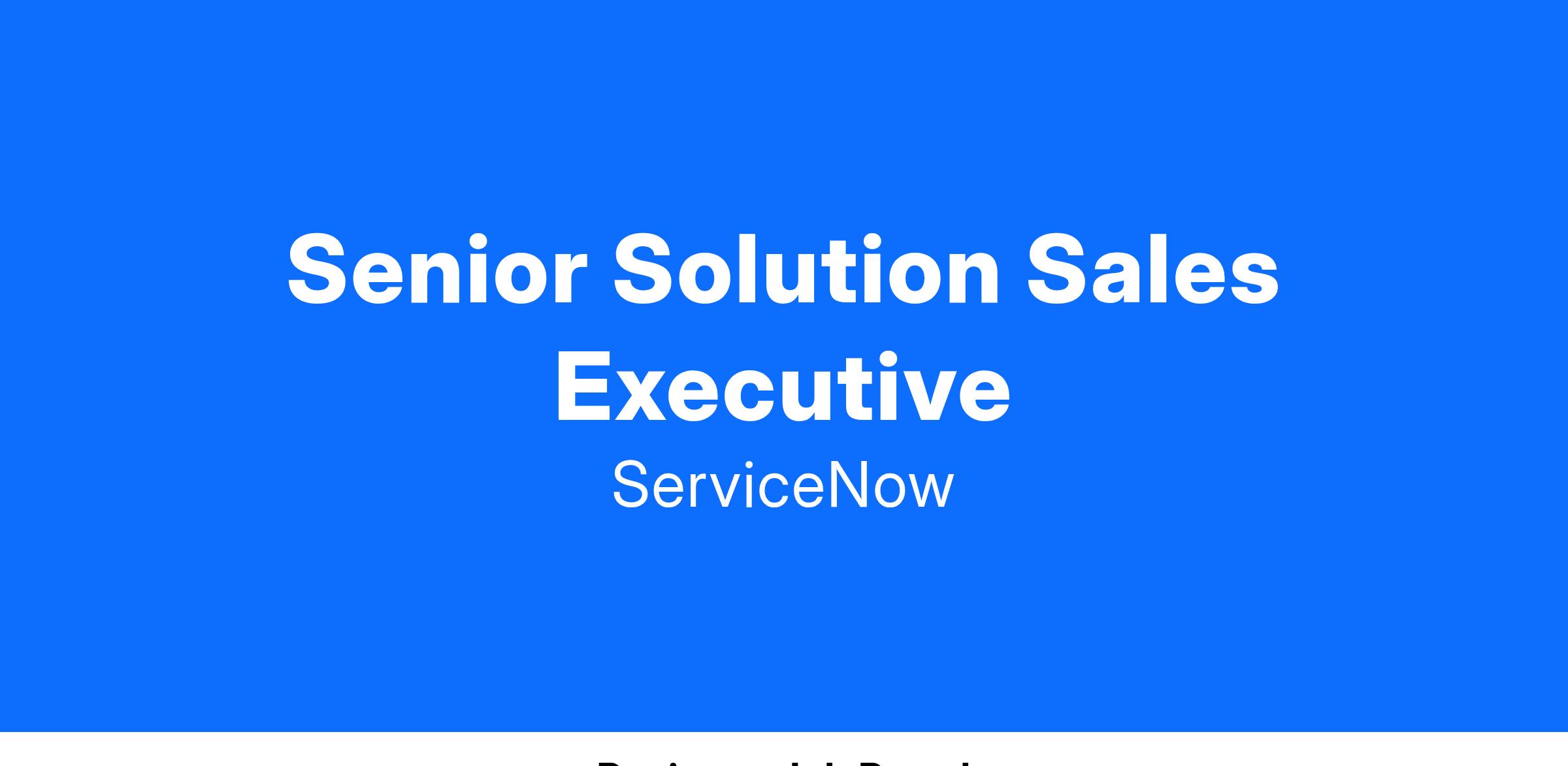 The Solution Sales Executive will oversee market success of ServiceNow's Customer and Industry Workflow Healthcare Provider products. These products are built on our market leading Service Management platform and create a single source of truth that allows enterprise processes to execute with uniform information.