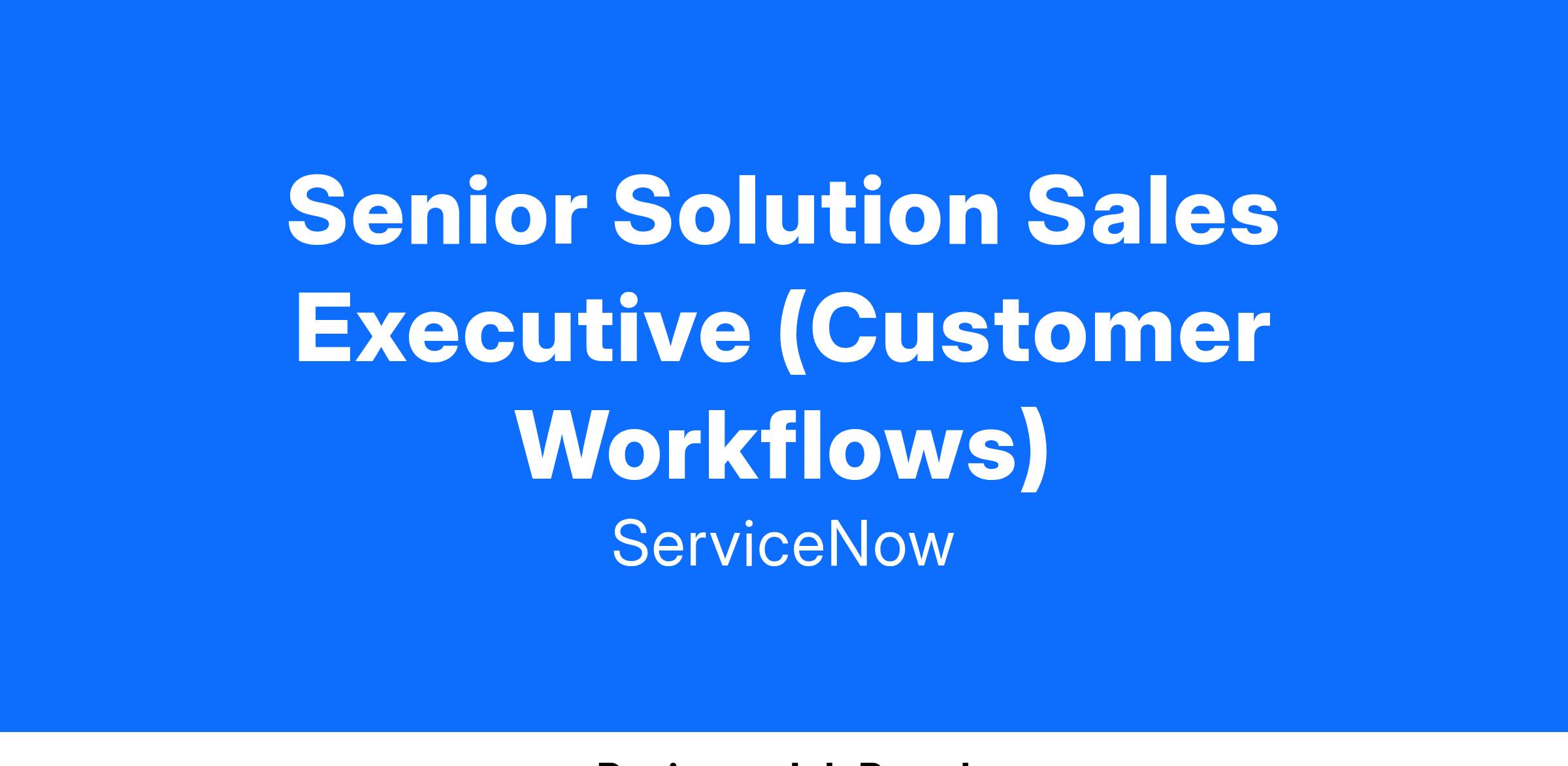 The Solution Sales Executive will oversee market success of ServiceNow's Customer Workflow products. These products are built on our market leading Service Management platform and create a single source of truth that allows enterprise processes to execute with uniform information.