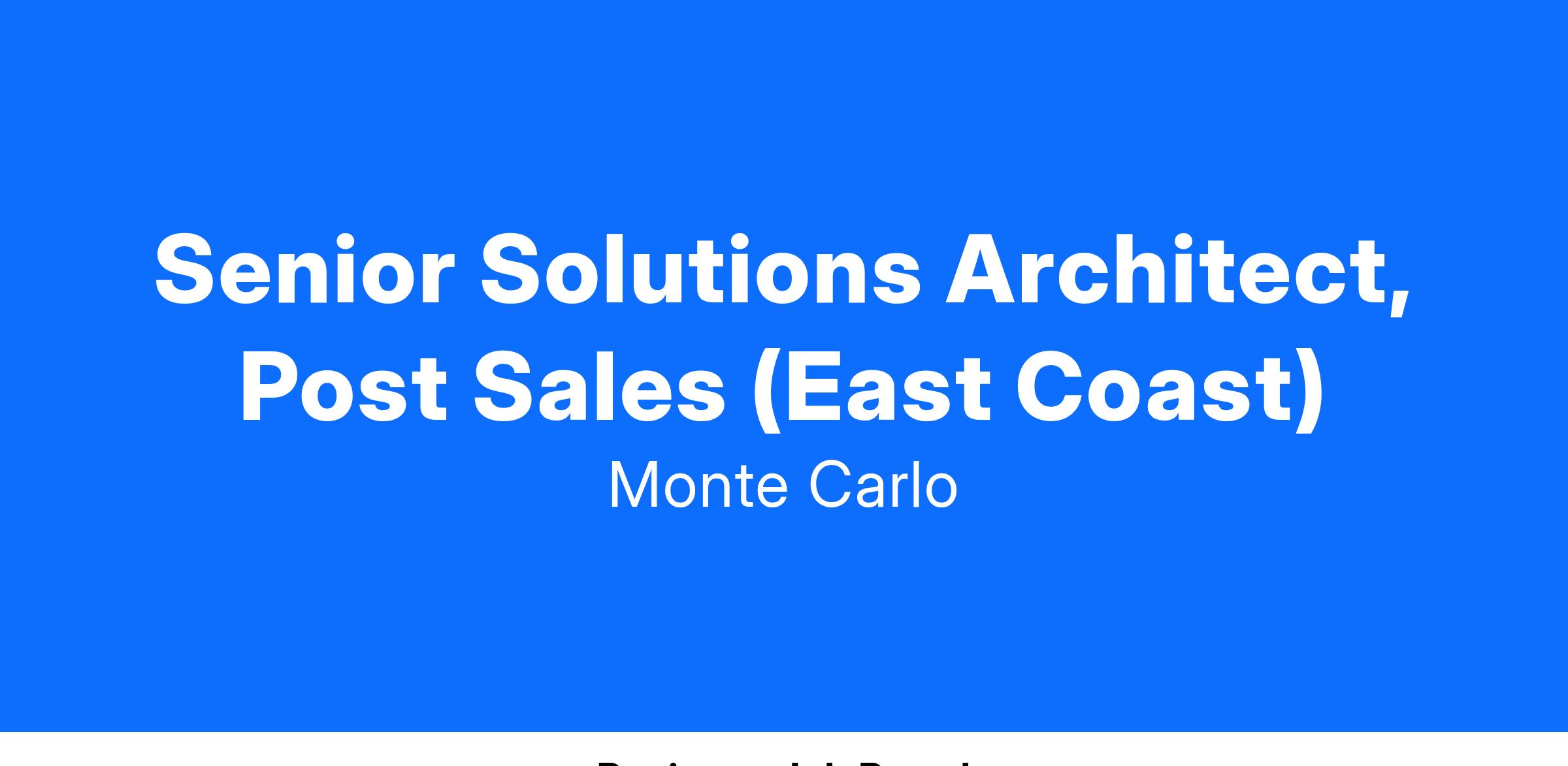 3-5 years of experience in a technical, customer-facing role, preferably within the data technology space. Finding creative solutions to unlock the value of our product. Learn our customers’ data infrastructure so you can be prescriptive on how they should implement Monte Carlo.