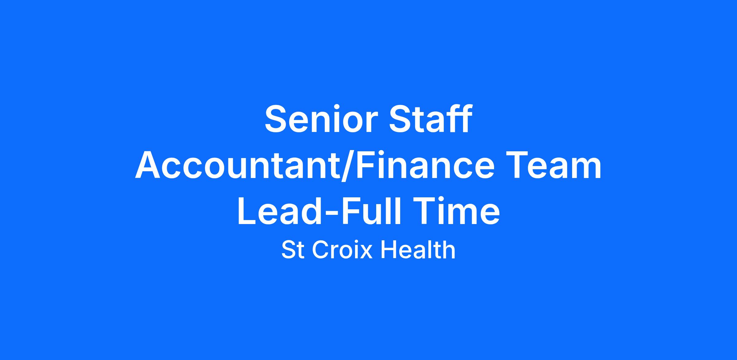 St. Croix Health is seeking a Senior Staff Accountant/Finance Team Lead to join our team. This position is full-time (1.0 FTE) and will typically work day hours, Monday through Friday.