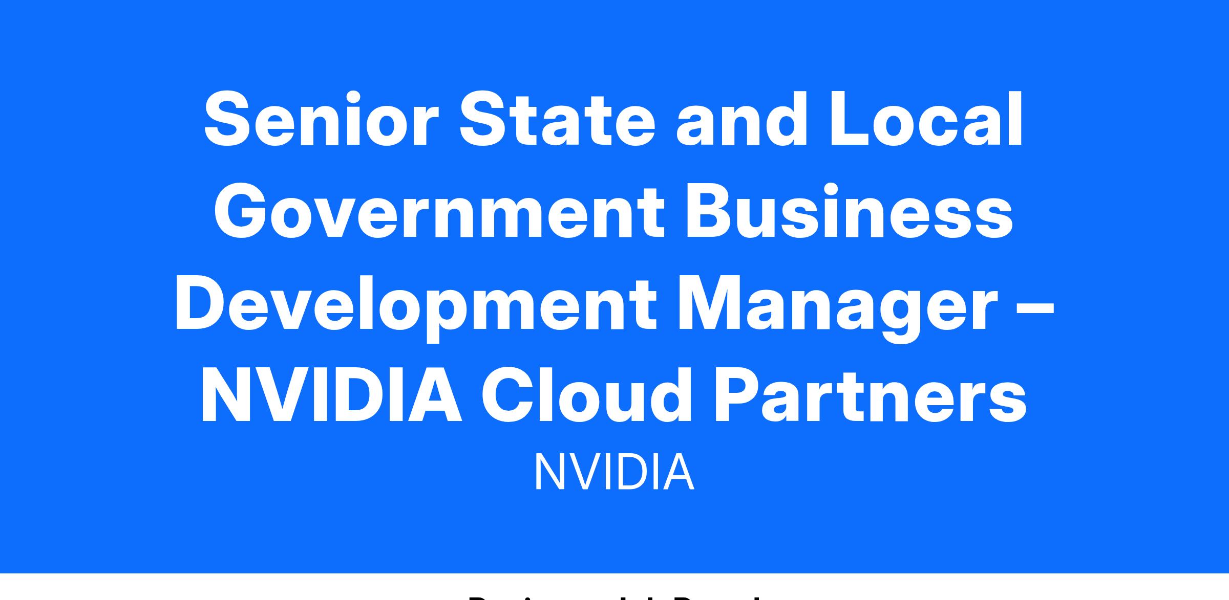 NVIDIA is the engine of modern artificial intelligence (AI), the biggest technology breakthrough of our time. We have entered the era of Generative AI, where State and local government are looking to enhance efficiency and streamline citizen services. We uniquely power AI products and applications living at the edge to the data center to the Cloud. NVIDIA is a trusted advisor with deep expertise in guiding State and local government agencies to build and deploy AI solutions. Our ecosystem of innovative start-ups is building AI solutions on NVIDIA's Accelerated Computing Stack, bringing AI innovation to government. The NVIDIA State and Local Government team is helping identify the top AI use cases that will deliver the highest value. Would you like to be part of NVIDIA’s leadership in AI and Accelerated computing? We are looking for a Senior State and Local Government Business Development Manager – NVIDIA Cloud Partners with AI expertise to drive software revenue through our Cloud.