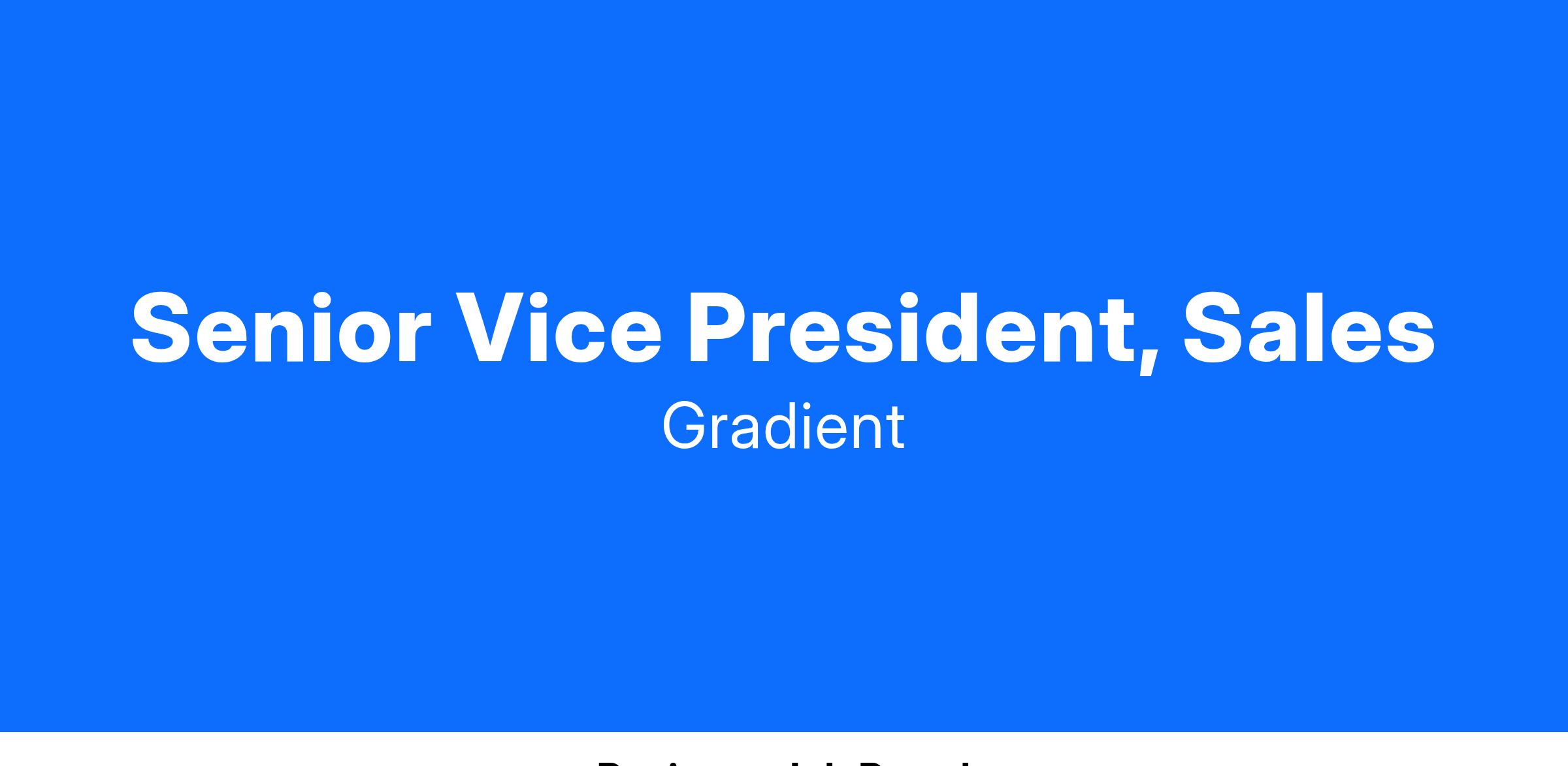 We are seeking an exceptional Senior VP of Sales to lead and scale our B2B sales organization during a period of rapid growth. Reporting to the Chief Executive Officer, you will be responsible for defining our Go-to-Market Process, coordinating Marketing/PR, establishing Sales Ops and executing our sales strategy while building and leading a high-performing team to drive sustainable revenue growth.