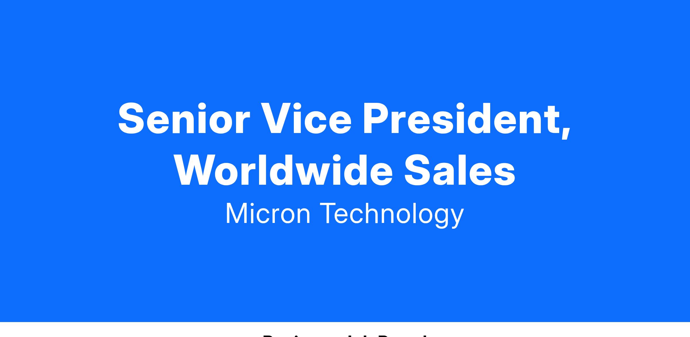 Micron is seeking an elite leader for the Senior Vice President, Worldwide Sales role, reporting directly to the CEO. This individual will lead a commercial go-to-market organization. He/she will be responsible for global sales and revenue at Micron and lead the company’s efforts to foster innovative sales approaches that broaden Micron’s business opportunities and enhance customer relationships worldwide. The role will be based in San Jose, CA.
