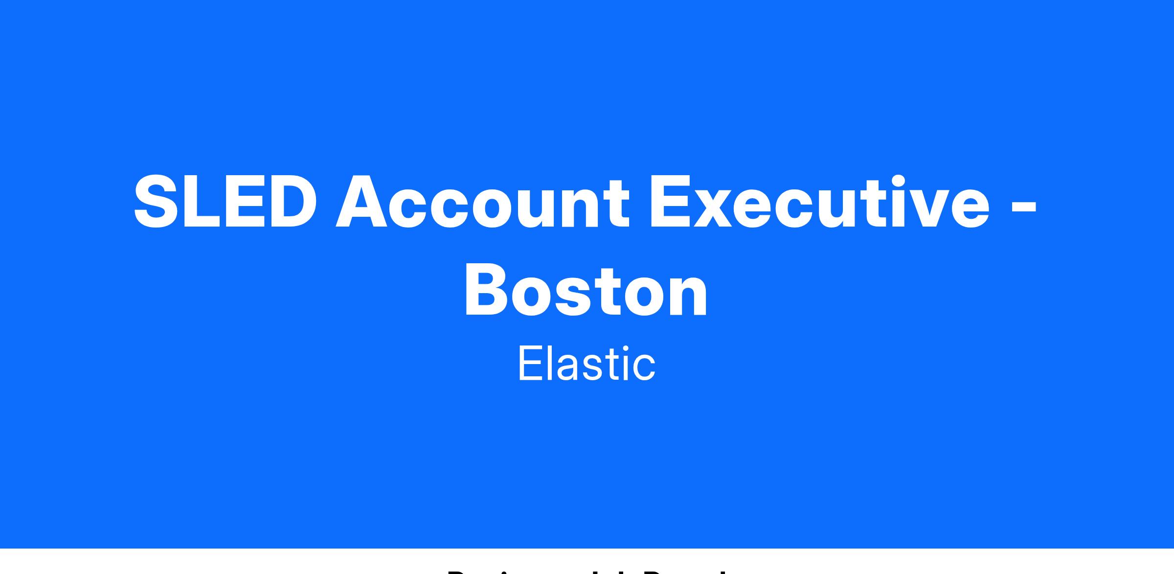 Elastic, the Search AI company, is seeking a dynamic SLED Account Executive. As an integral part of our growth strategy, you will play a key role in expanding our presence within state and local public sector accounts across Massachusetts. This is an opportunity for those who are passionate about empowering organizations through cutting-edge search technology and analytics, enabling them to unlock the full potential of their data.