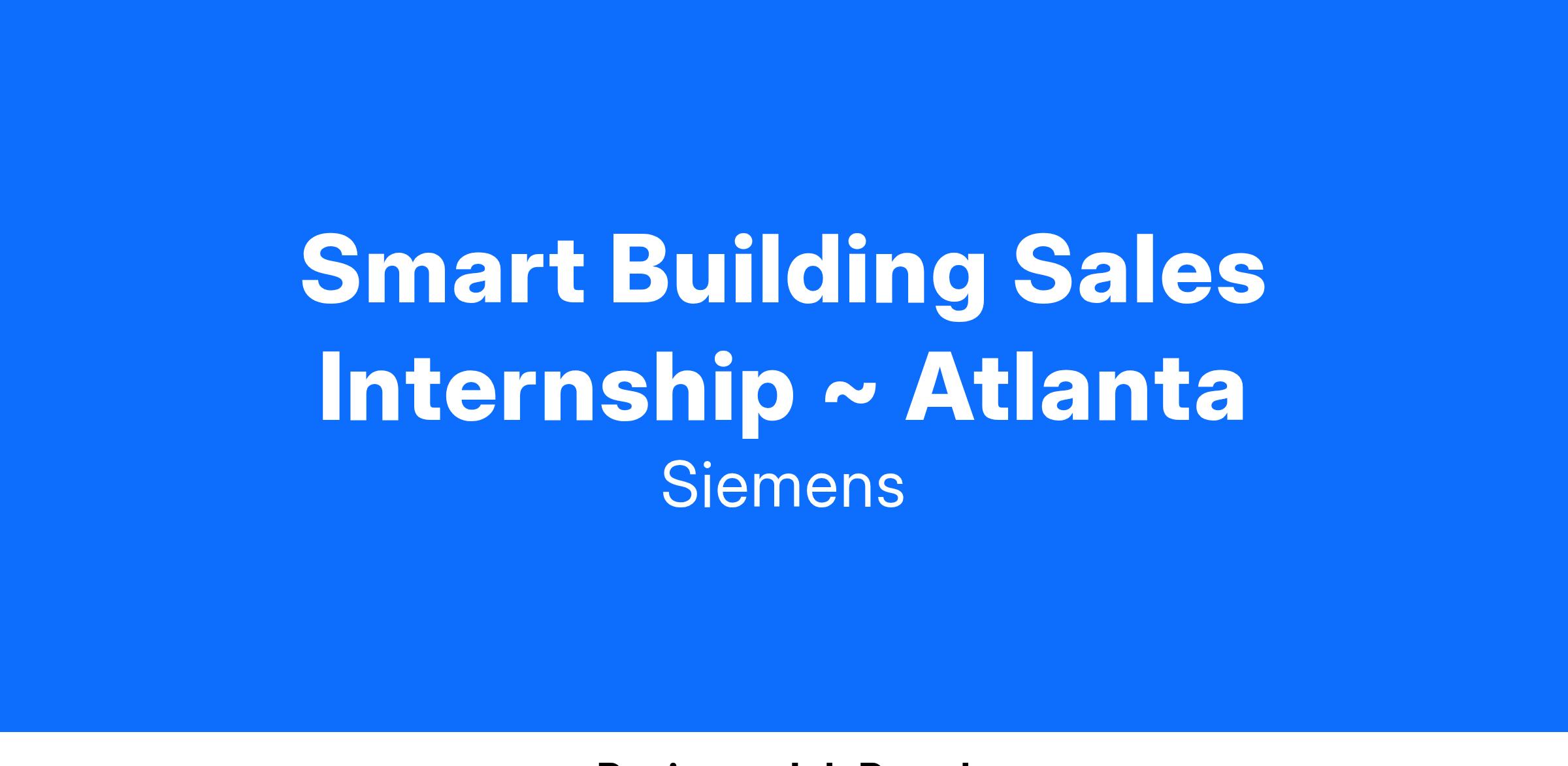 Then look to the Siemens Smart Buildings Internship Program!