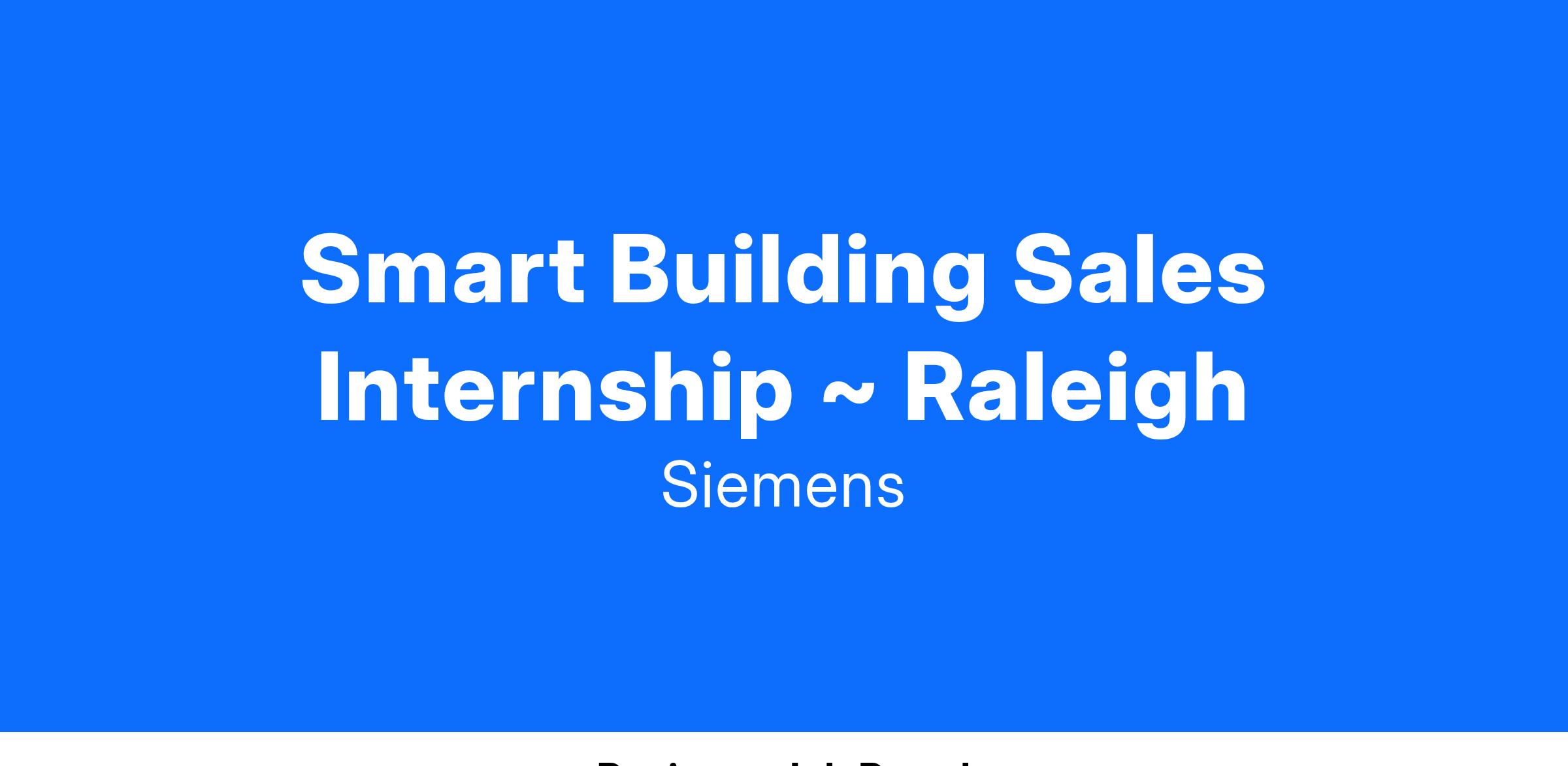 Then look to the Siemens Smart Buildings Internship Program!