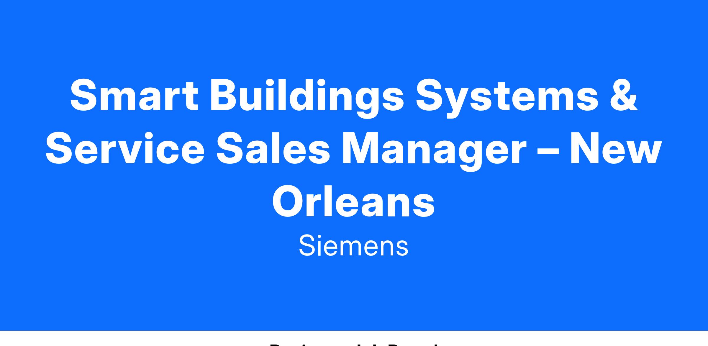 The Smart Buildings Systems & Service Sales Manager is committed to promoting Siemens strong market position for delivering smart building technology for Building Automation, Fire Alarm and Life Safety Systems, Electrical Service, and Security Systems & Service to help our customers create outstanding experiences for their customers. Why is this so important? Our Sales Managers lead a team responsible for transforming buildings to be digitally connected and controlled and with your strong leadership skills and passion for team building you’ll help find and hire top talent, develop employees, and promote long-term retention.