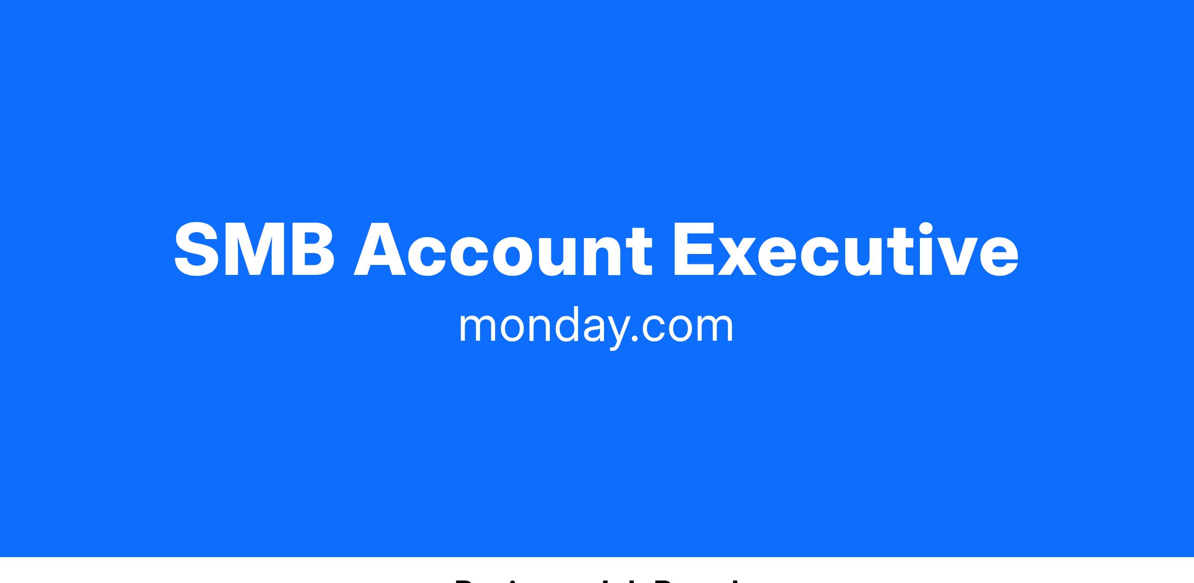 We're looking for an Account Executive to join our expanding team! There are a few things we take really seriously here at monday.com: building an amazing product and providing the best possible service to our customers. Our clients love our product, and it's incredibly unique (and fun) to walk our clients to success using our platform.