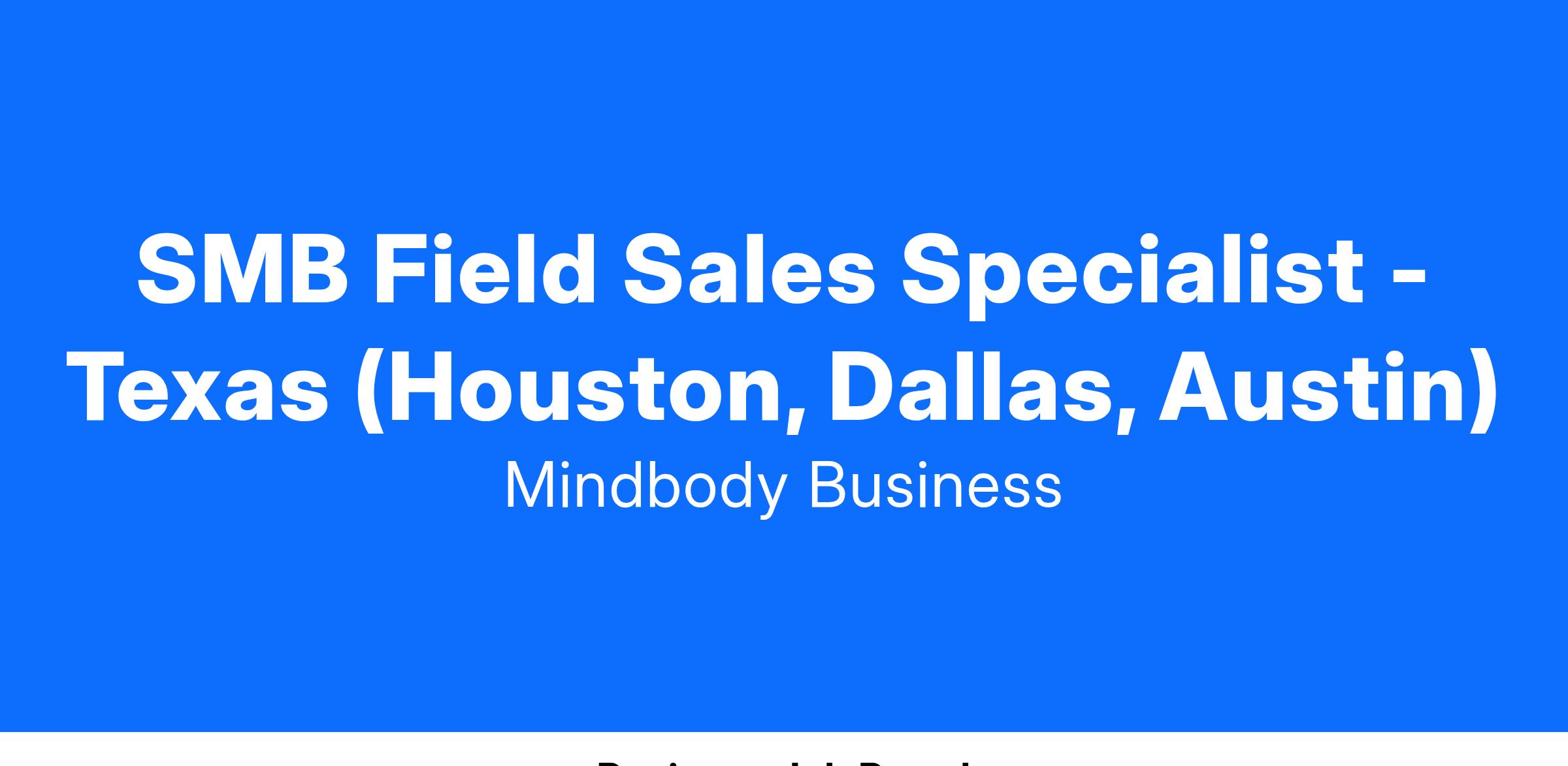 This role is 50% remote inside sales and 50% field sales in Texas (Houston, Dallas, Austin). All travel, mileage, and necessary meals while working in the field would be expensed by ClassPass. This person should be located within Texas with a willingness to travel in/around Houston, Dallas, and/or Austin up to 50% of the time.