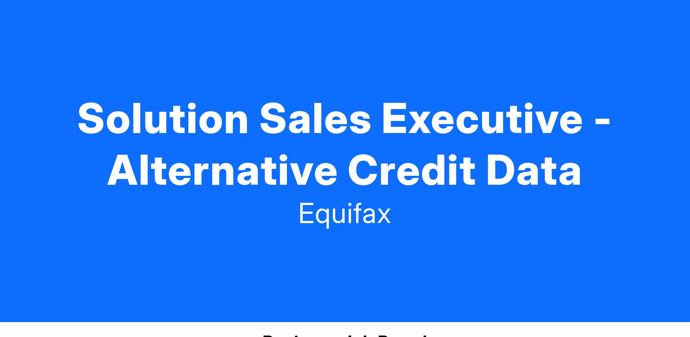 This Solution Sales Executive opening will be responsible for supporting Equifax’s opportunities as a subject matter expert (SME) for our alternative credit data products and services and will fall under our FinTech, Payments, and Alternative Finance vertical. This role will sell across a mix of industries such as Communications, Energy, Travel, Hospitality, Financial Services, FinTech, Insurance, etc. and uncover client’s business problem(s) to develop customized solutions.