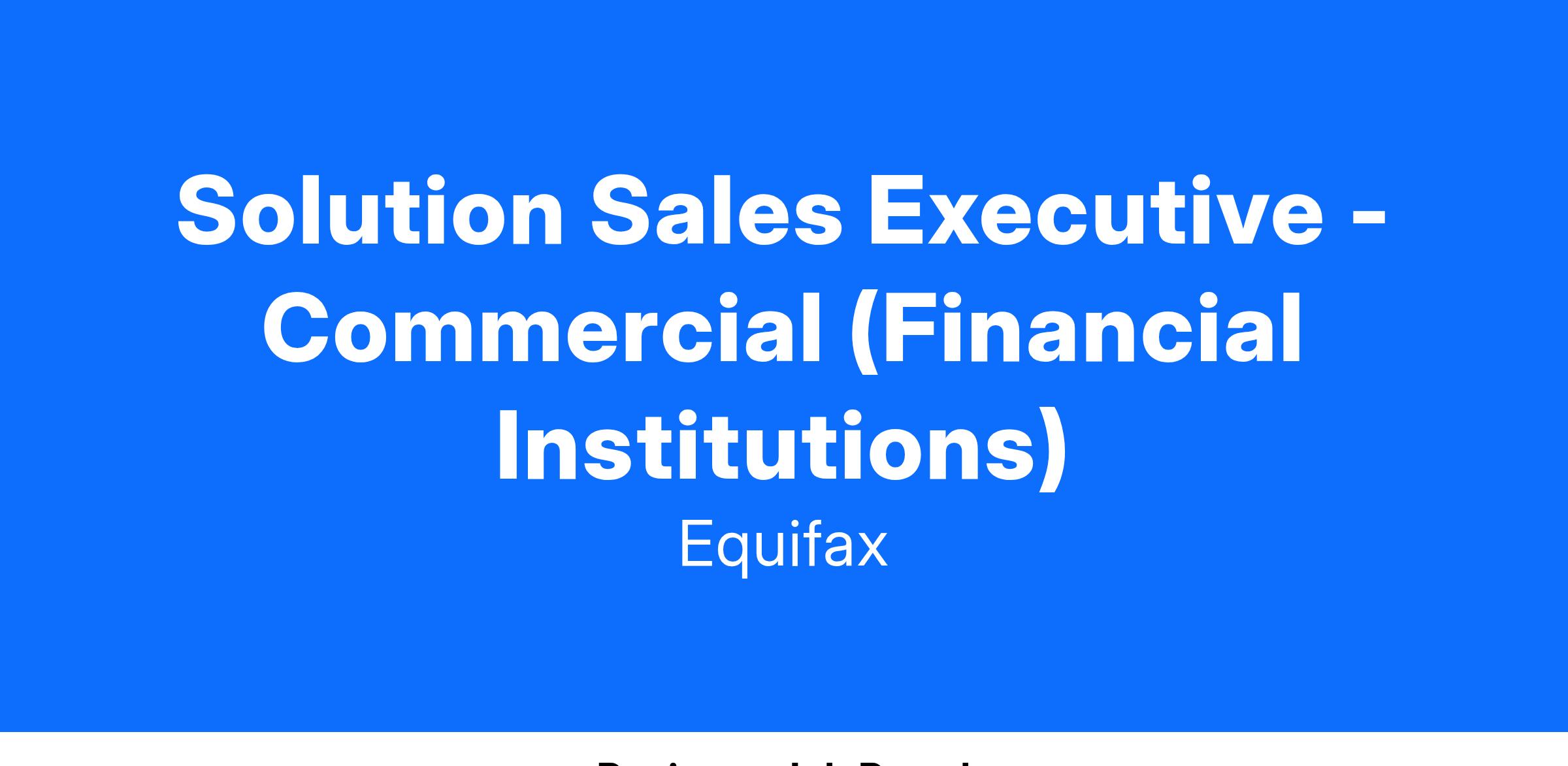 This Solution Sales Executive - Commercial position will be responsible for supporting Equifax’s partnership opportunities within Financial Institutions as a subject matter expert (SME) for Equifax Commercial Business data solutions. This role will work with an existing book of business and will be tasked with growing those accounts as well as hunting new opportunities.