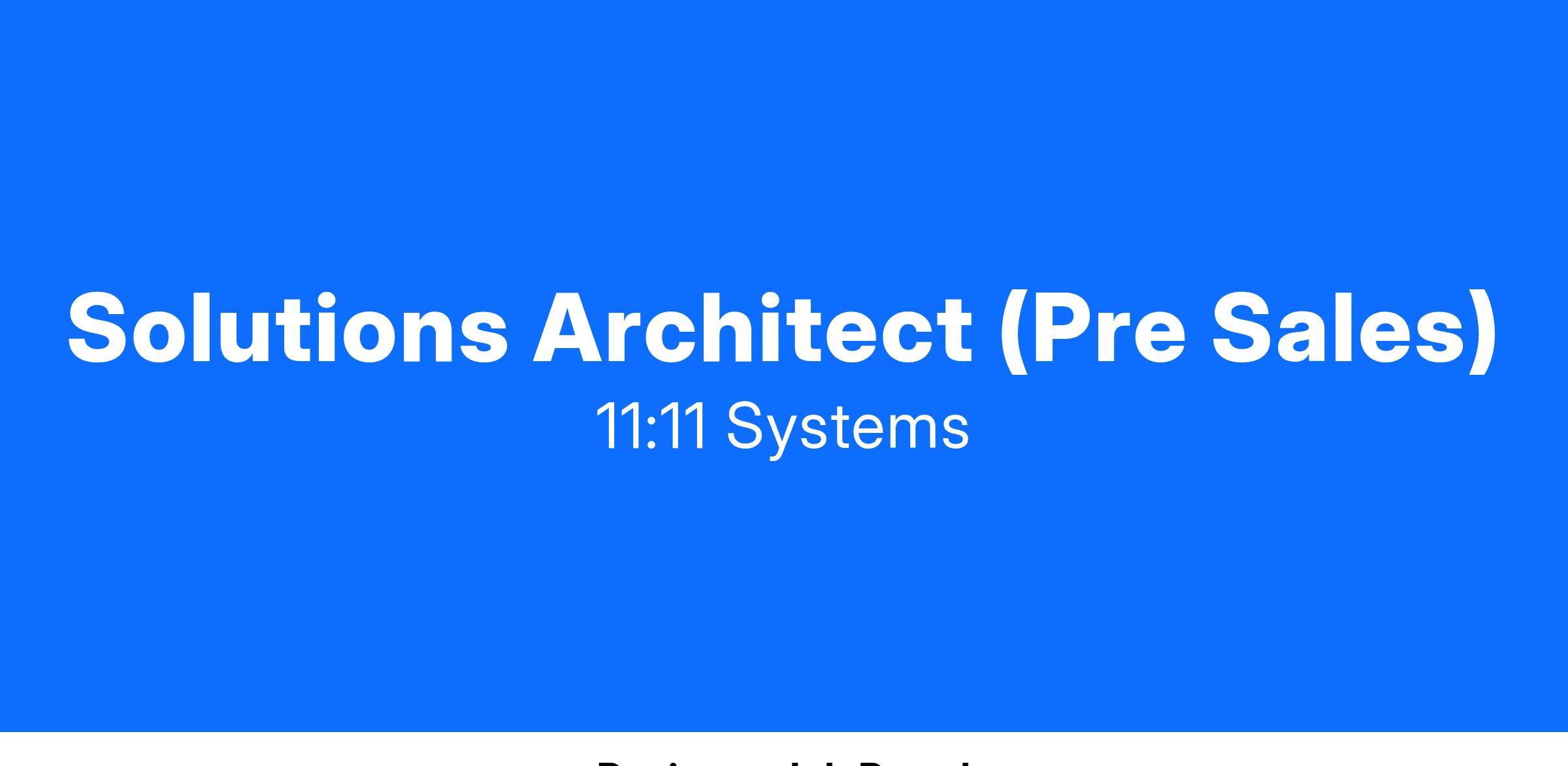 11:11 Systems is seeking an experienced Solutions Architect to join our pre-sales team. The Solutions Architect partners with the 11:11 Systems sales team to both acquire new business and grow existing customer accounts. As a Solutions Architect you will lead pre-sales technical discussions, discovering and uncovering customer technical requirements as the discussions unfold.