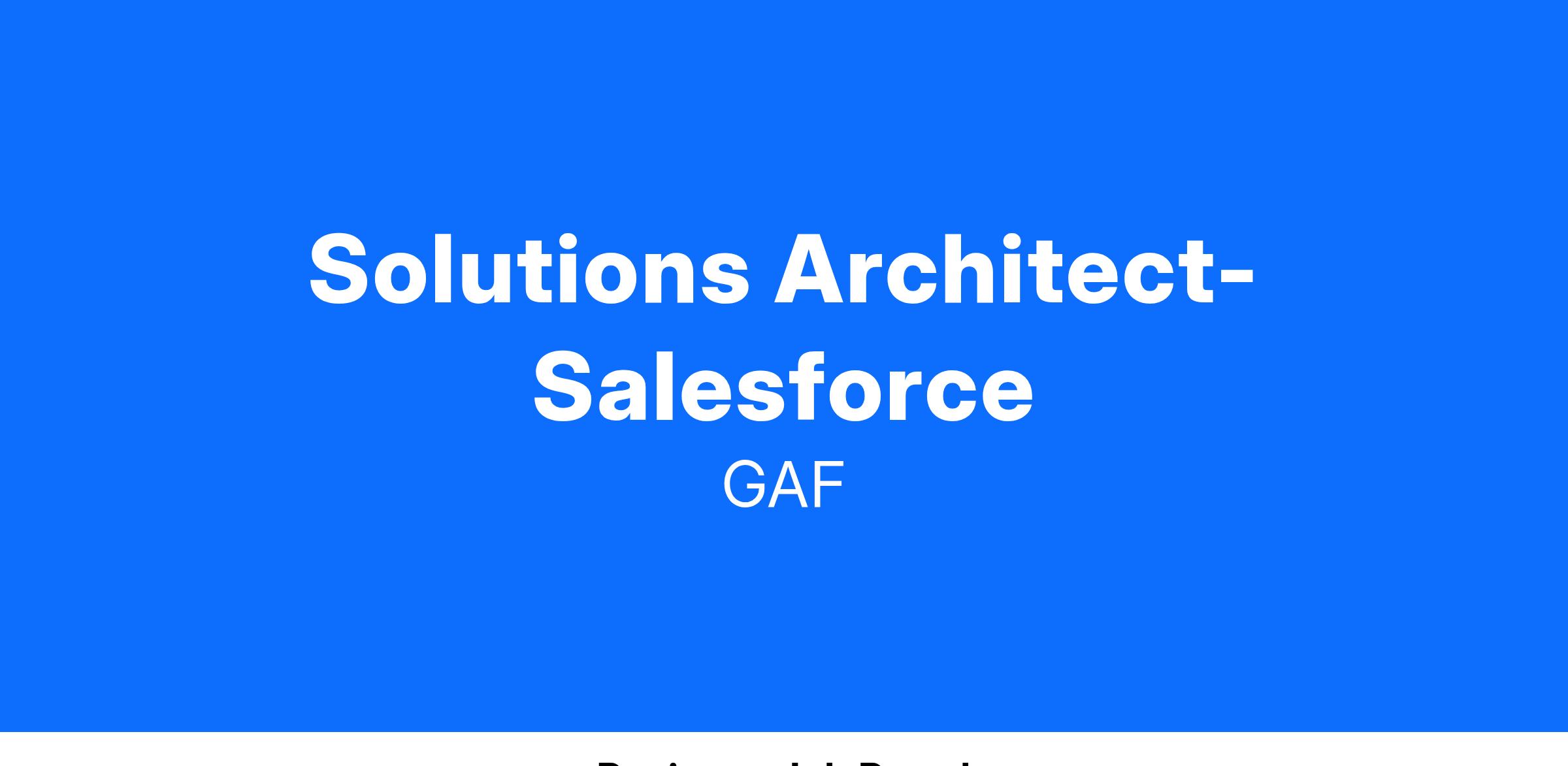 Craft comprehensive solution architectures that meet business requirements, optimize performance and ensure scalability. Lead Salesforce developers in the delivery of custom solutions that follow GAF standard SDLC process