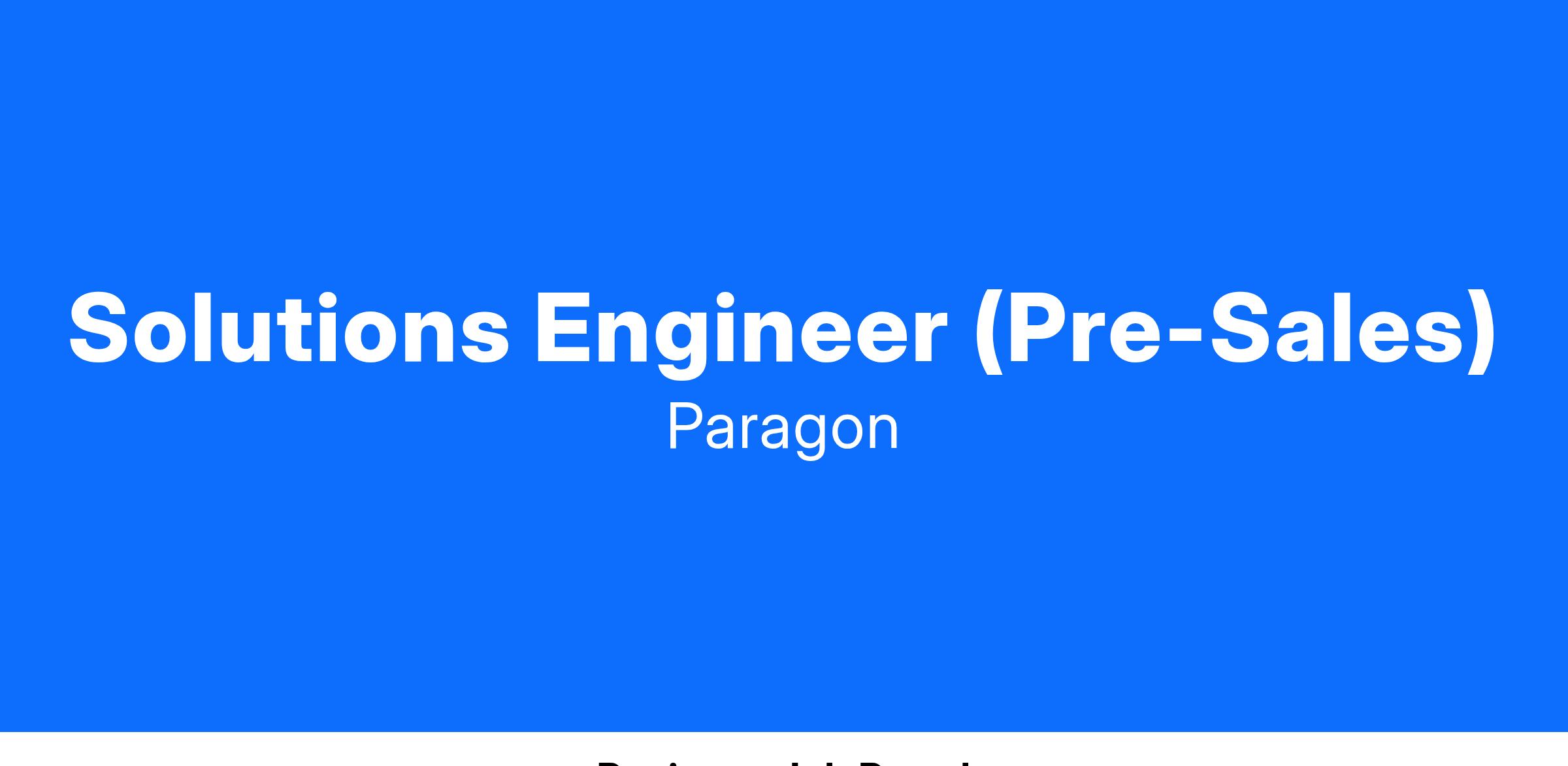 We're looking for a solutions engineer to join our team at Paragon. You'll work directly with our CEO as a technical expert for Paragon's products in the sales organization. This is a dynamic, cross-functional role that spans sales, engineering, and support.