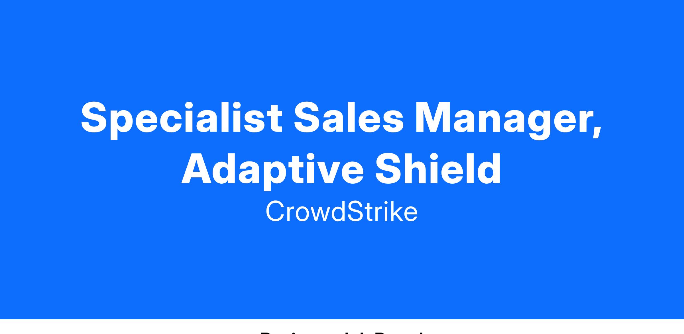 Adaptive Shield, a CrowdStrike company, is a leading provider of SSPM solutions that enables security teams to stay on top of their organization's; apps, identities, and any unusual behavior in their SaaS ecosystem. Today it is transforming how CrowdStrike’s Falcon protects our customers. That’s why we’re not just looking for candidates with impressive resumes; we’re seeking pioneers. We’re on a quest to enrich our team with individuals who bring more than just expertise - we want trailblazers who have navigated the realms we’re venturing into. Your experience in this new field won't just be valued; it will be the cornerstone of our journey towards innovation.At the core of this is our people. It’s important to inspire, support, and enable one another, so we've chosen a diverse group of talented, compassionate, and fun people to work with. The work is challenging but also allows for great flexibility to prioritize off-work commitments. We’ve found this to be the perfect mix for us. If you see yourself as a great match, we’d love nothing more than for you to join us at the forefront of innovation as our new Sales Specialist!!