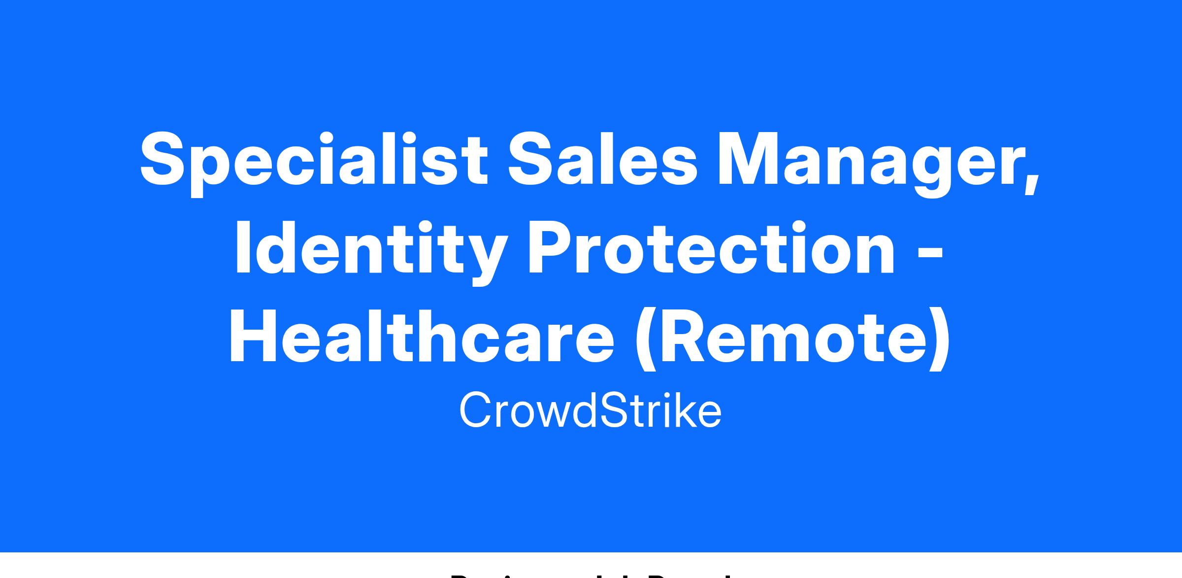 The Identity Protection Specialist Team enhances CrowdStrike’s ability to grow, position, sell, and maintain Identity security business across all geographic sales theaters. Identity Security Sales Managers will work with and across CrowdStrike regional sales, sales engineering, marketing, product development, and services organizations to execute identity security sales playbooks, directly engage customers around CrowdStrike Identity security capabilities, and help customers operationalize the Identity Protection security solution within the Falcon Platform..