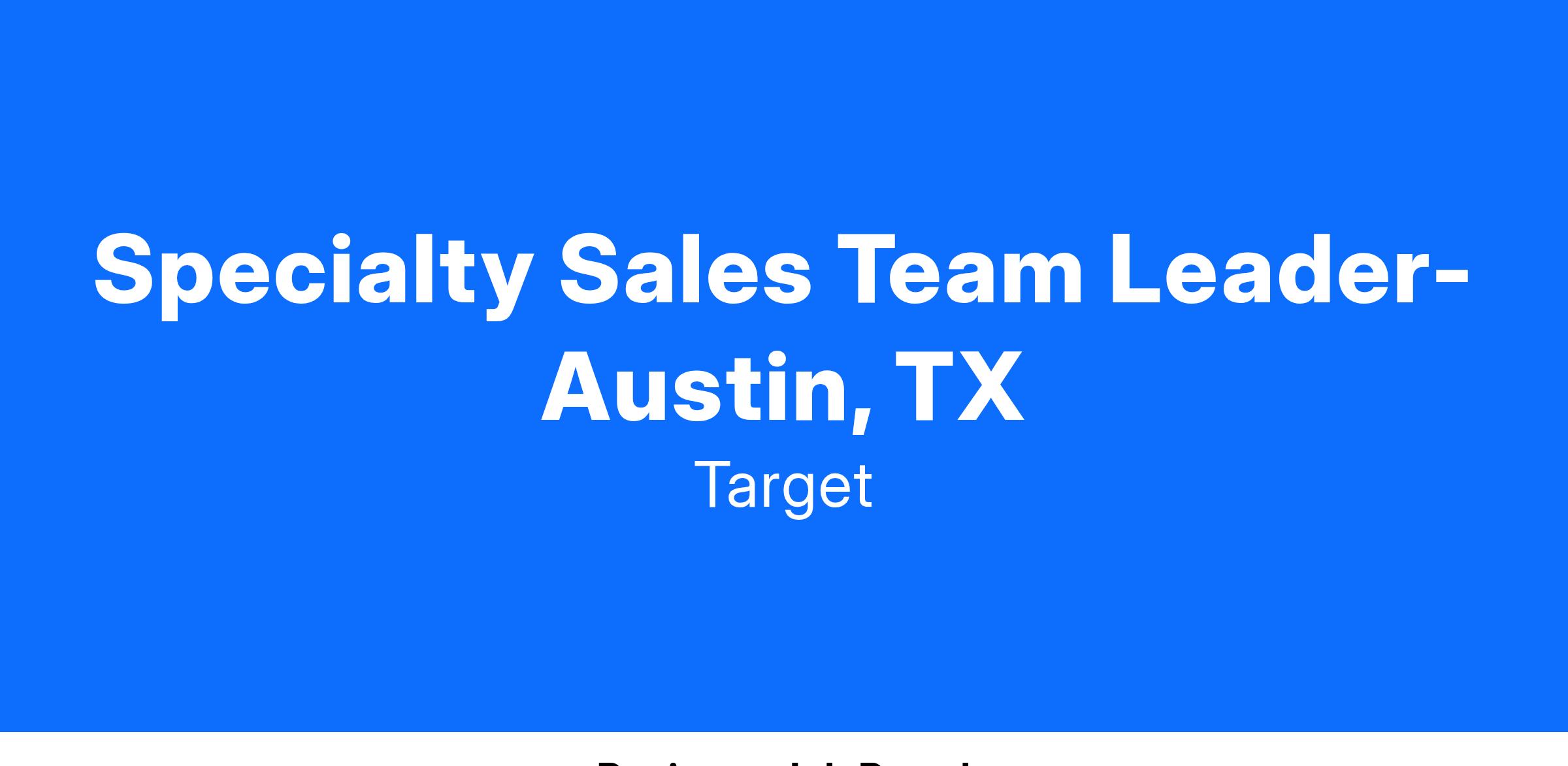 At Target, we believe in our team members having meaningful experiences that help them build and develop skills for a career. The role of a Specialty Sales Team Leader can provide you with the skills and experience of: