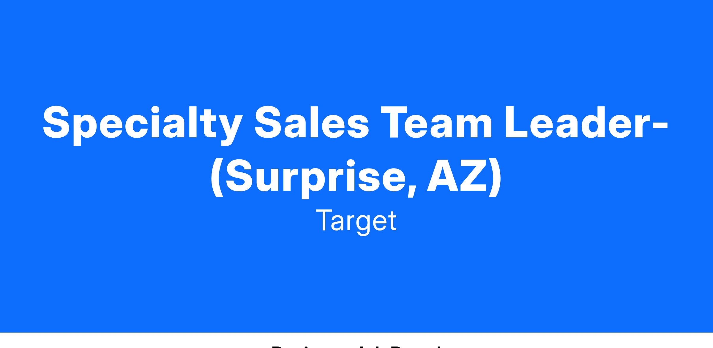 Specialty Sales Team Leader- (Surprise, AZ)