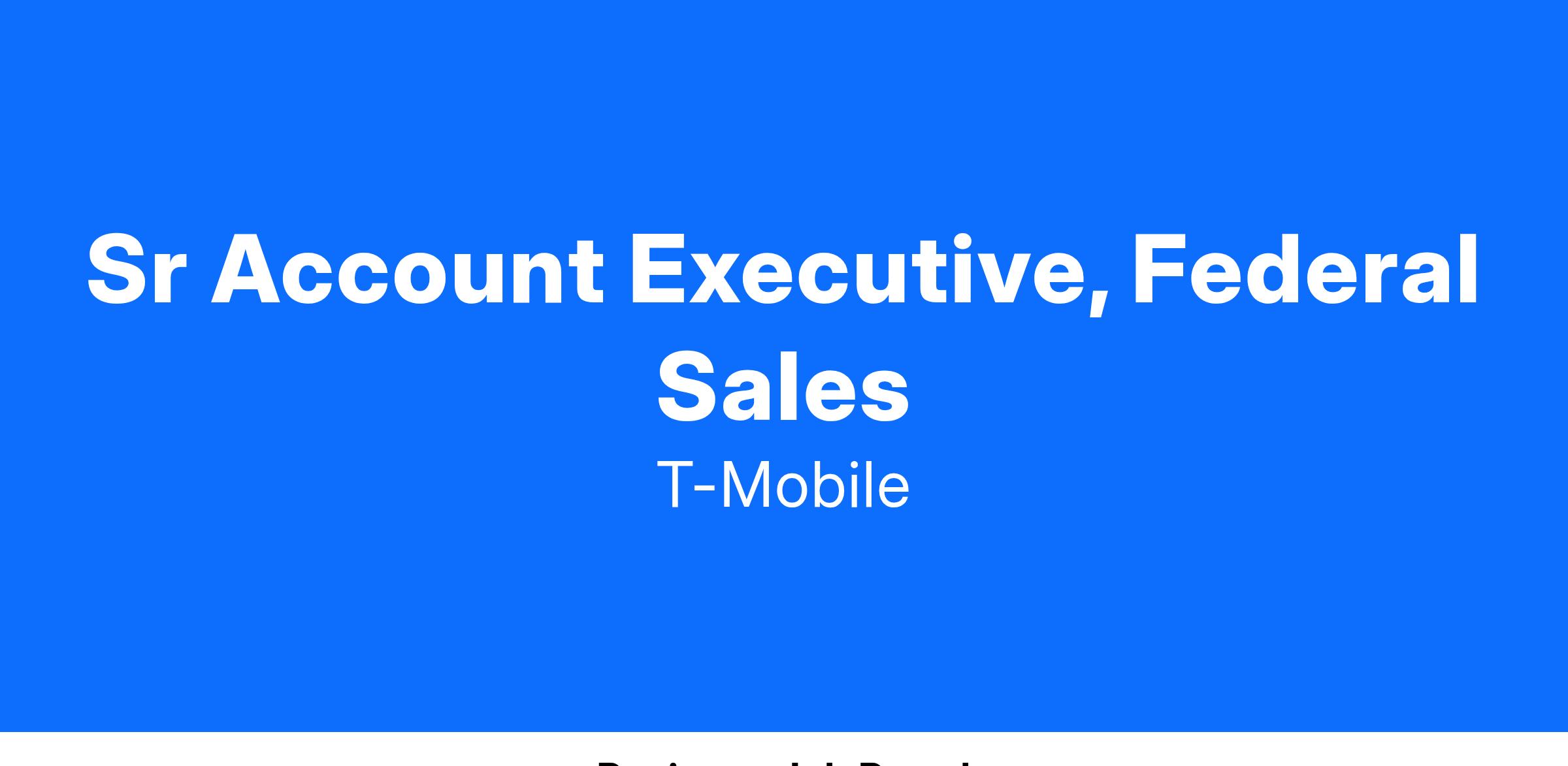 The Sr Account Executive, Federal Sales will call on C Suite and Executive level of Federal Government agencies and qualified organizations to sell products and services and gain new business through prospecting, cold-calling, networking and generating leads and referrals. Meets and exceeds sales objectives by acquiring targeted strategic accounts. The primary function of this role is to lead all customer interaction efforts with key decision makers to create new opportunities for sales and relationship growth within the team's Federal Government account deck. Partnering with other teams, the FCSE's consistently lead a portfolio of active lines and will identify customer needs and use solution-based selling techniques to fully demonstrate the value of T-Mobile products and services.