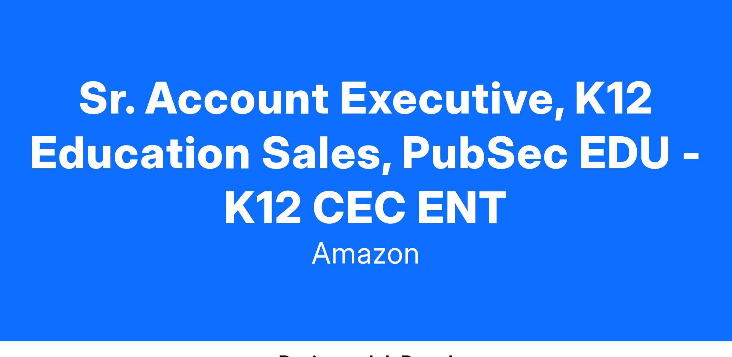 The Amazon Business for Education team is dedicated to developing solutions inclusive of an expanded online store that combines the selection, convenience, and value customers have come to know and love from Amazon, with new features and unique benefits tailored to customers in the K-12 Education sector. The ideal candidate will have relevant K-12 Education consultative sales experience and have a proven track record of meeting and exceeding program goals and revenue targets.