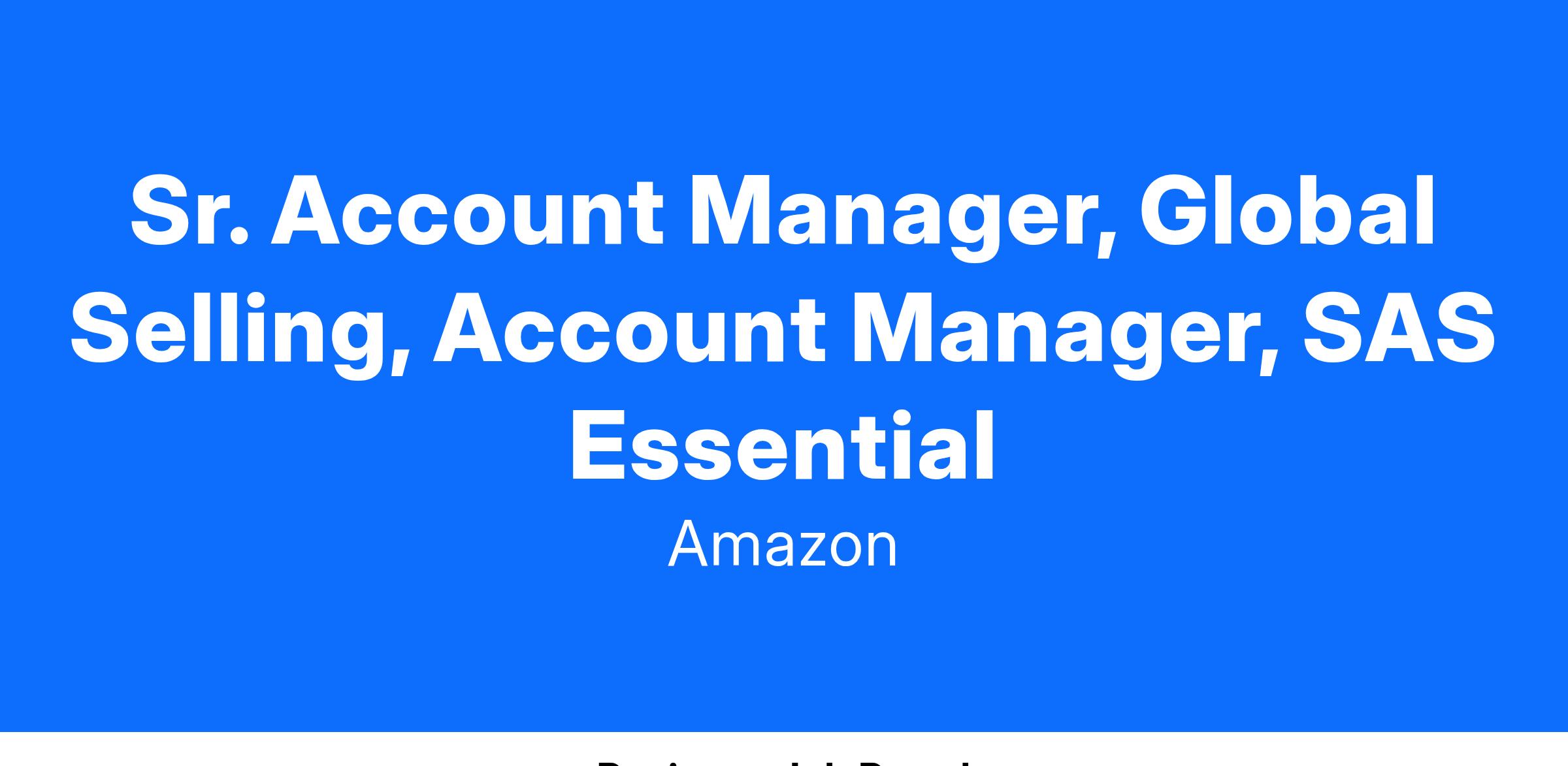 Sr. Account Manager, Global Selling, Account Manager, SAS Essential