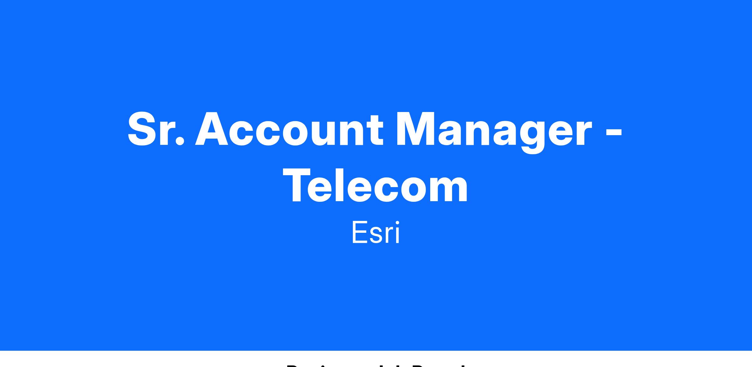 We invite you to bring your experience and passion for GIS, communications networks, 5G, and broadband expansion coupled with an understanding of applying geospatial technology to become an integral part of Esri’s Telecommunications sales team. We’re looking for an individual who is customer oriented and a collaborative team player who enjoys identifying and implementing strategies that will radically improve the challenges organizations face. You’ll work closely with a team that helps the largest telecommunications companies optimize and expand adoption of Esri technology, identify new areas of growth, and deliver expertise that helps deliver on their mission.