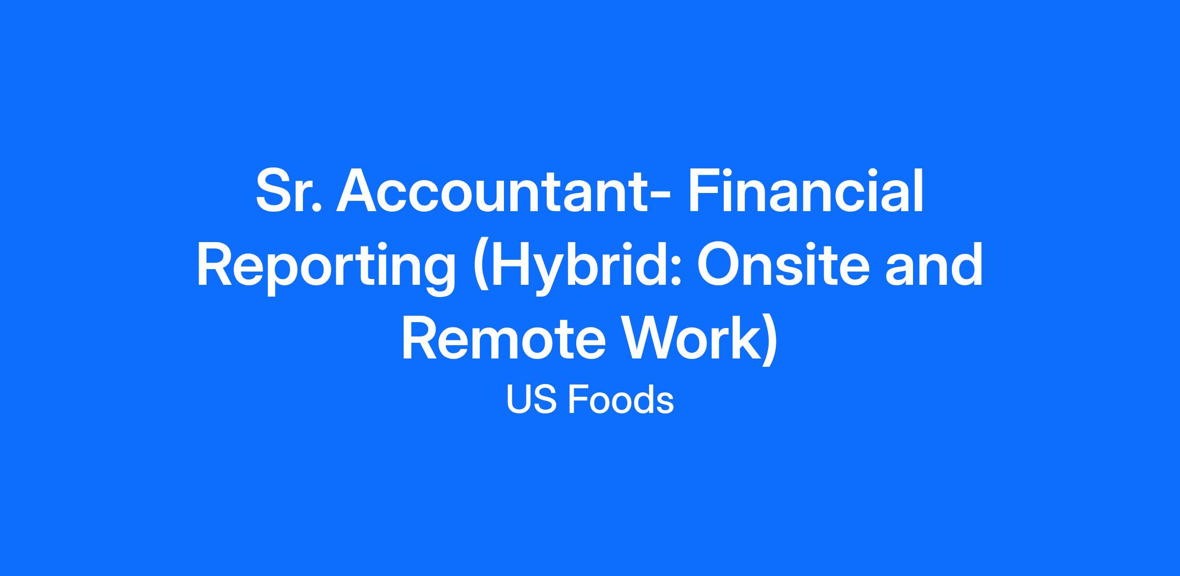 The Sr. Accountant of Financial Reporting will be accountable for the month-end and year-end close processes including company consolidation, SEC financial reporting, corporate accounting, and project management. Financial reporting and analysis for both internal and external use. Collaborates with and acts as a key contact for the Controller’s Group, specifically for corporate accounting, analysis, and projects/initiatives incorporated into or impacting these areas. This role works closely with the Controller’s Group, Finance team, and external auditors.This position has been segmented as Hybrid meaning there is a combination of three onsite days per week and the rest remote.