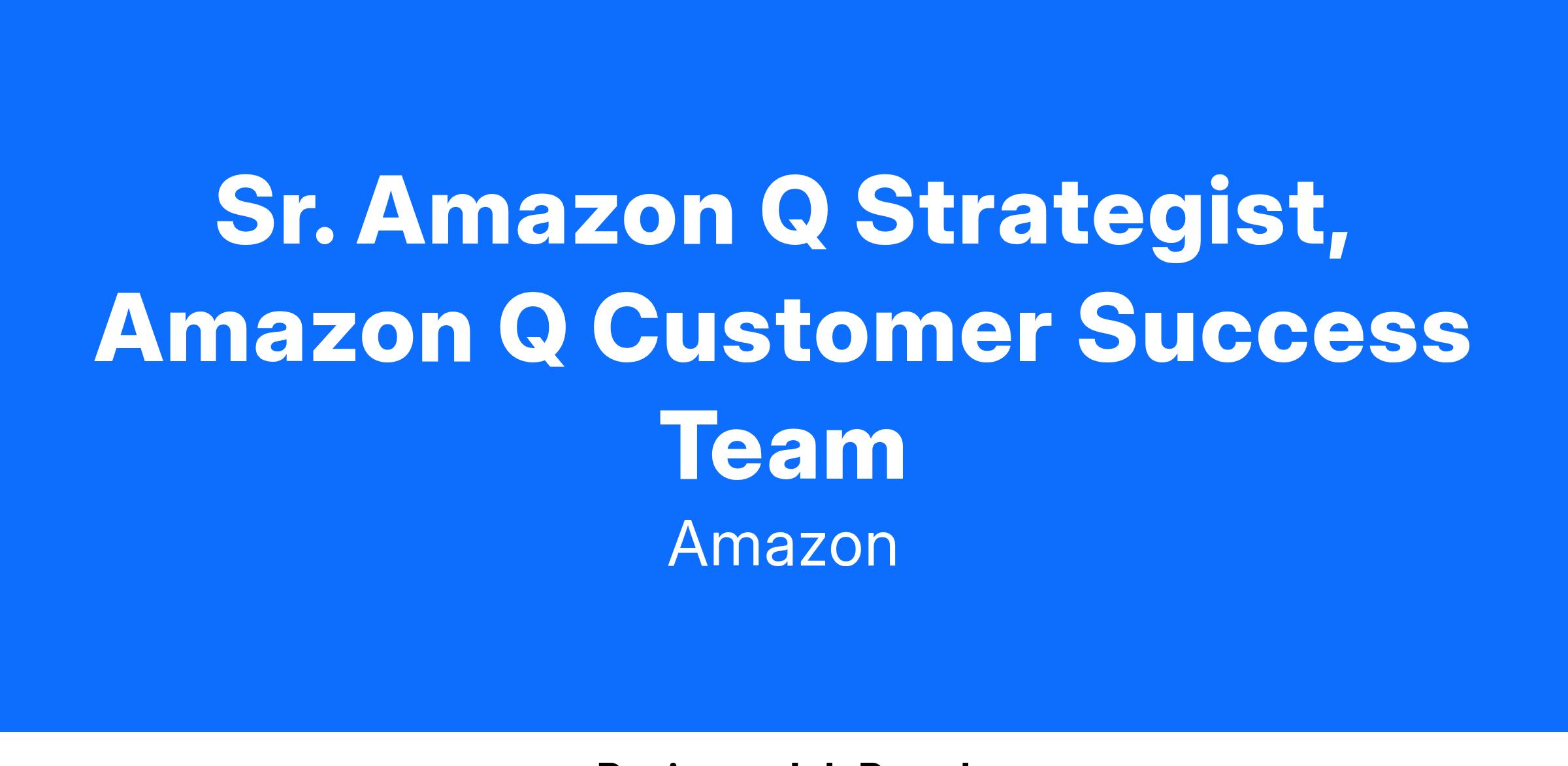 Sr. Amazon Q Strategist, Amazon Q Customer Success Team