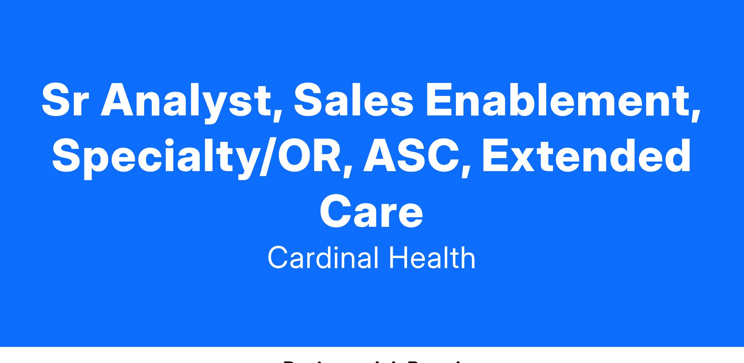 The salary range listed is an estimate. Pay at Cardinal Health is determined by multiple factors including, but not limited to, a candidate’s geographical location, relevant education, experience and skills and an evaluation of internal pay equity.