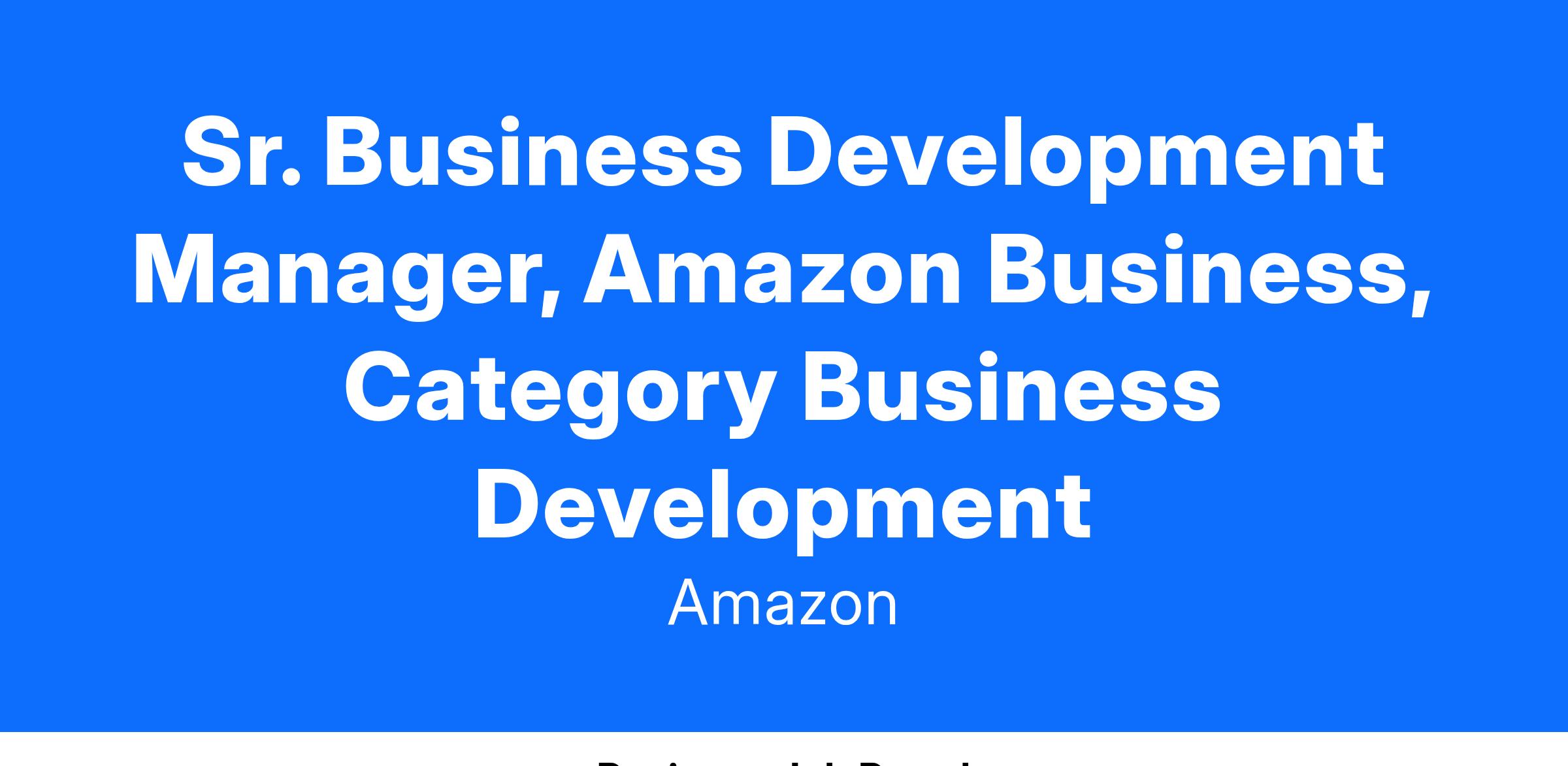 Sr. Business Development Manager, Amazon Business, Category Business Development