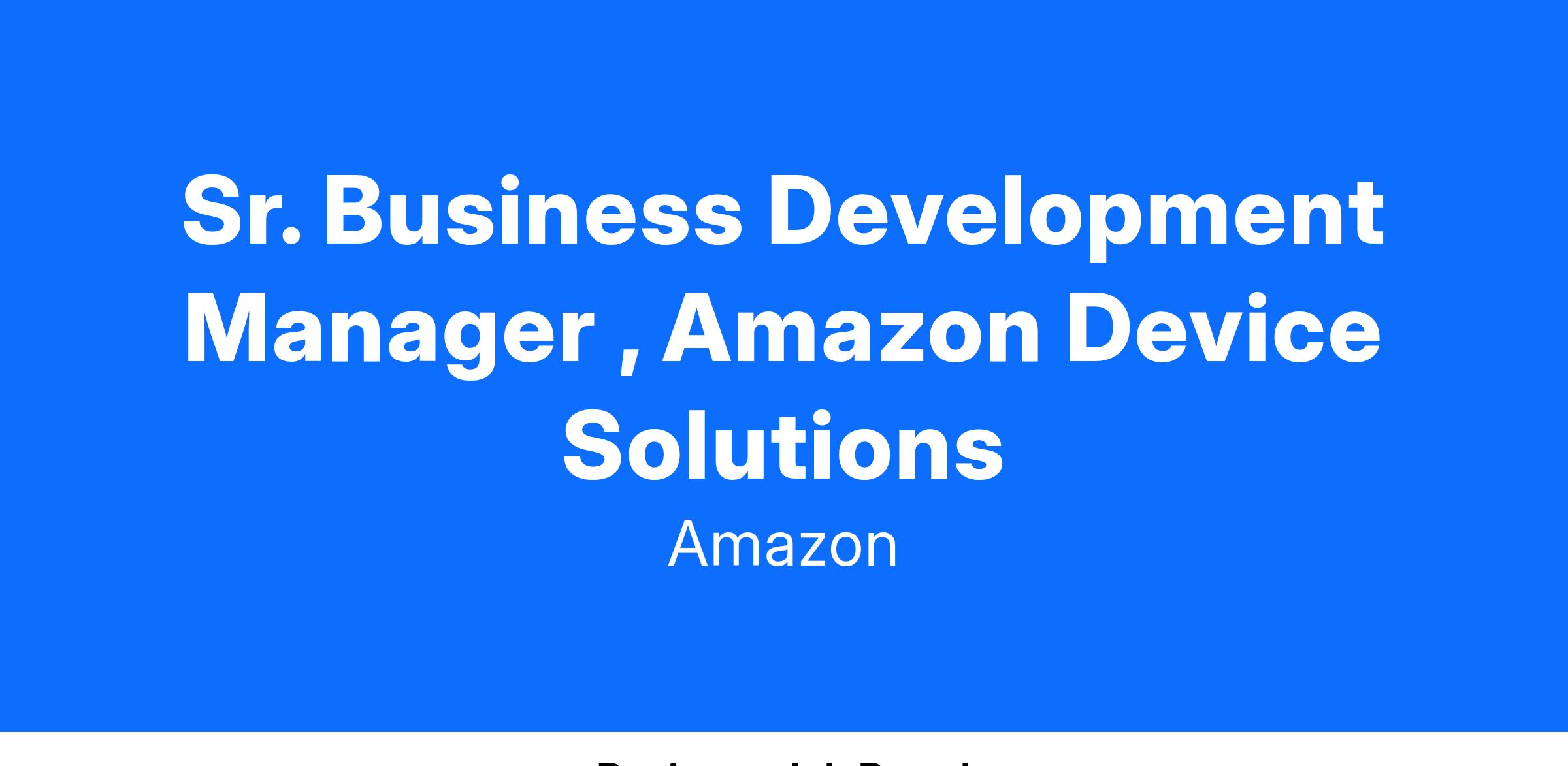 The Amazon Device Solutions (ADS) team creates scalable B2B opportunities by leveraging Amazon's investments in devices, technologies, and infrastructure. Operating like a startup within Amazon, we've launched innovative products such as the Amazon Workspace Thin Client and Amazon Signage Stick.