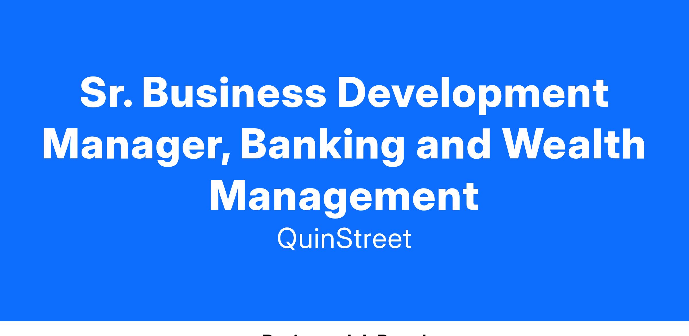 Sr. Business Development Manager, Banking and Wealth Management