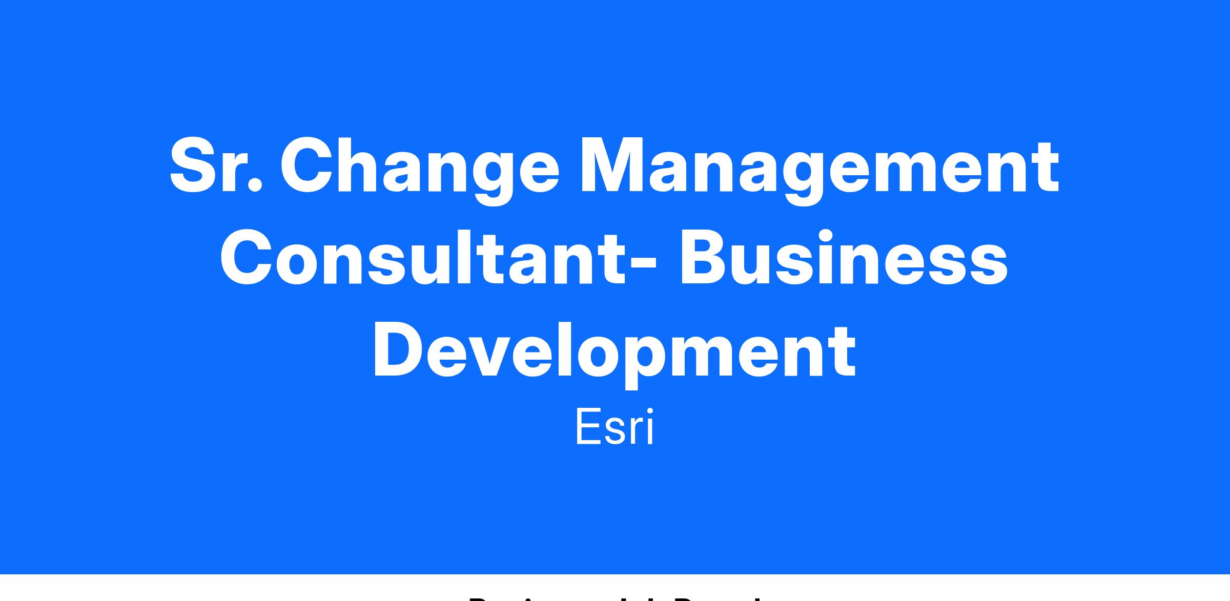 In this position, you will leverage your consulting, business development, and sales experience to help organizations achieve and accelerate their geospatial objectives. An energetic and resourceful individual is needed to partner with Esri customers and account teams to drive strategic conversations promoting and securing change management engagements. These engagements will address the people aspect of successful technology implementations that accelerate adoption of ArcGIS strategies and technology, and produce real business value.