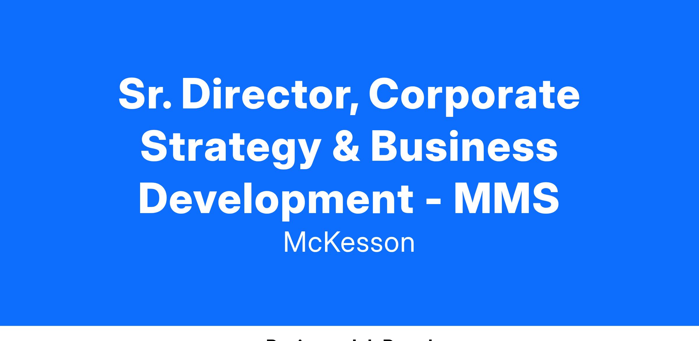 The McKesson Corporate Strategy and Business Development organization is seeking to add a Senior Director to its existing team, which is responsible for planning, delivering, and implementing high-priority strategic projects that advance the organization’s competitive position. In this challenging and highly visible role, this individual will support the MMS business unit in pulling through the enterprise’s broad strategy into the business unit’s reality. Our team conducts projects related to evaluating and incubating new growth opportunities and solutions, partnering with external stakeholders, and optimizing and growing our existing businesses. This role’s leadership will advance McKesson’s objective to achieve better business health for our customers and better care for all.