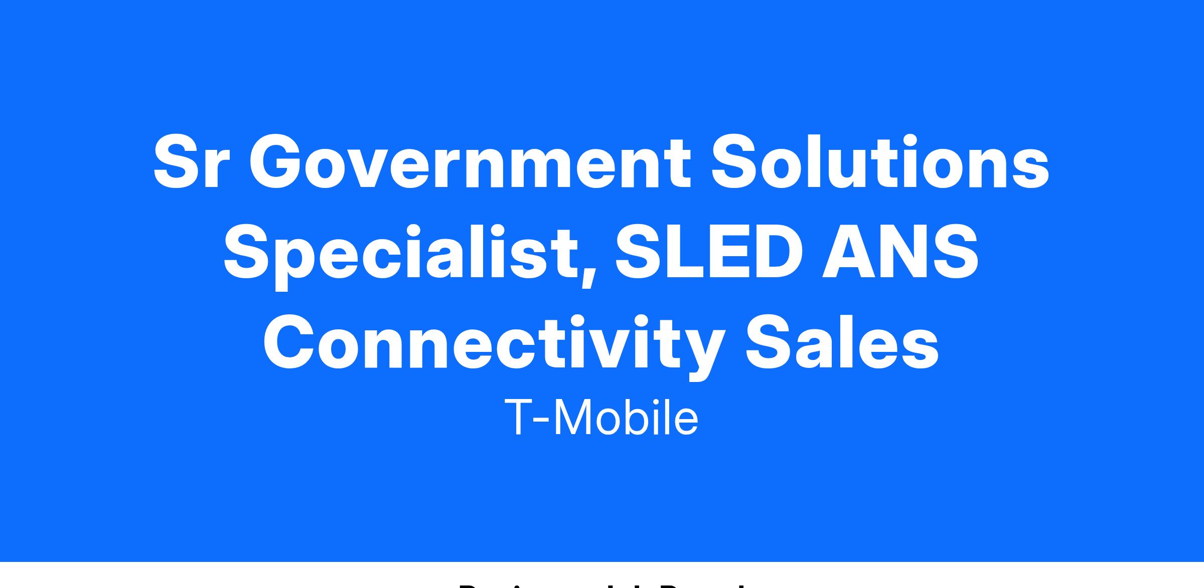 The Sr. Account Executive, Connectivity Product Sales is responsible for selling the T-Mobile 5G Advanced Network Solutions portfolio including Hybrid and Private Networks, MEC, Fixed Wireless Solutions, and SD Edge capabilities. This includes support for all field-based segment existing accounts and prospecting new business relationships that will drive connectivity product revenue for T-Mobile. Assigned product lines may evolve as T-Mobile introduces new products. The Sr Account Executive has an extensive understanding of the marketplace, competitive landscape and customer requirements for connectivity products.