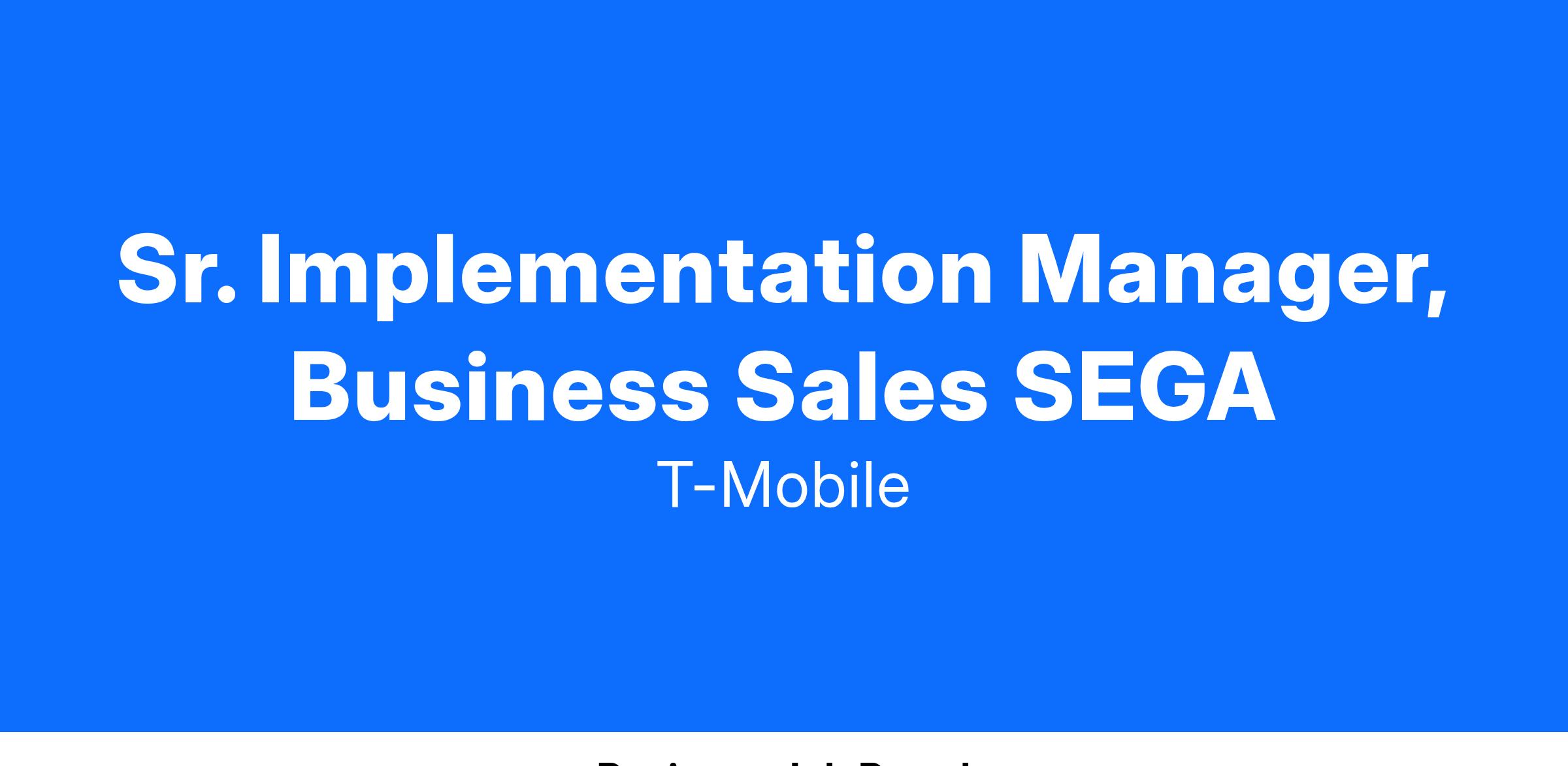 The Senior Implementation Manager (Sr. IM) is a field-based project management expert responsible for seamlessly and efficiently transitioning customers from all sales segments to T-Mobile's suite of solutions. The Sr. IM aims to deliver a world-class onboarding experience that begins at the start of the sales cycle and concludes after the customer's purchase has been fully implemented and is in use. The primary responsibility of the Sr. IM is to own and execute end-to-end onboarding and implementation plans for new and existing products, services, and solutions. The Sr. IM ensures that customers not only transition from competitor products and services to T-Mobile but also guarantees a seamless experience for end users, with zero negative impact to their business.
