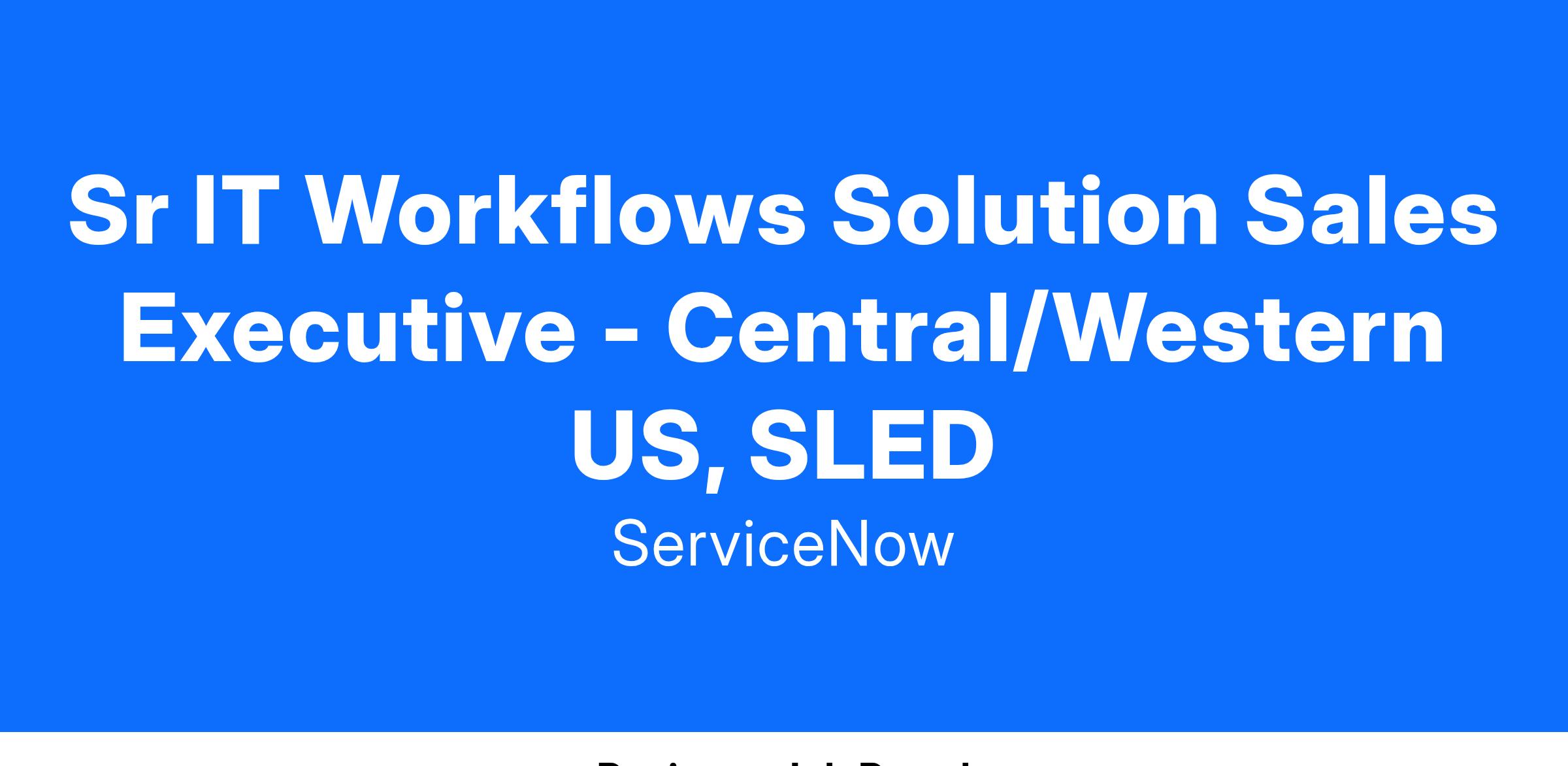 The Solution Sales Manager will oversee market success of ServiceNow's IT Asset and Portfolio Management products for our State and Local Government Agency and Higher Education customers in the Central and Western US Region ( this is a remote based role where the Sr Sales Exec will reside in territory - US Western, Mountain or Central Time Zones).