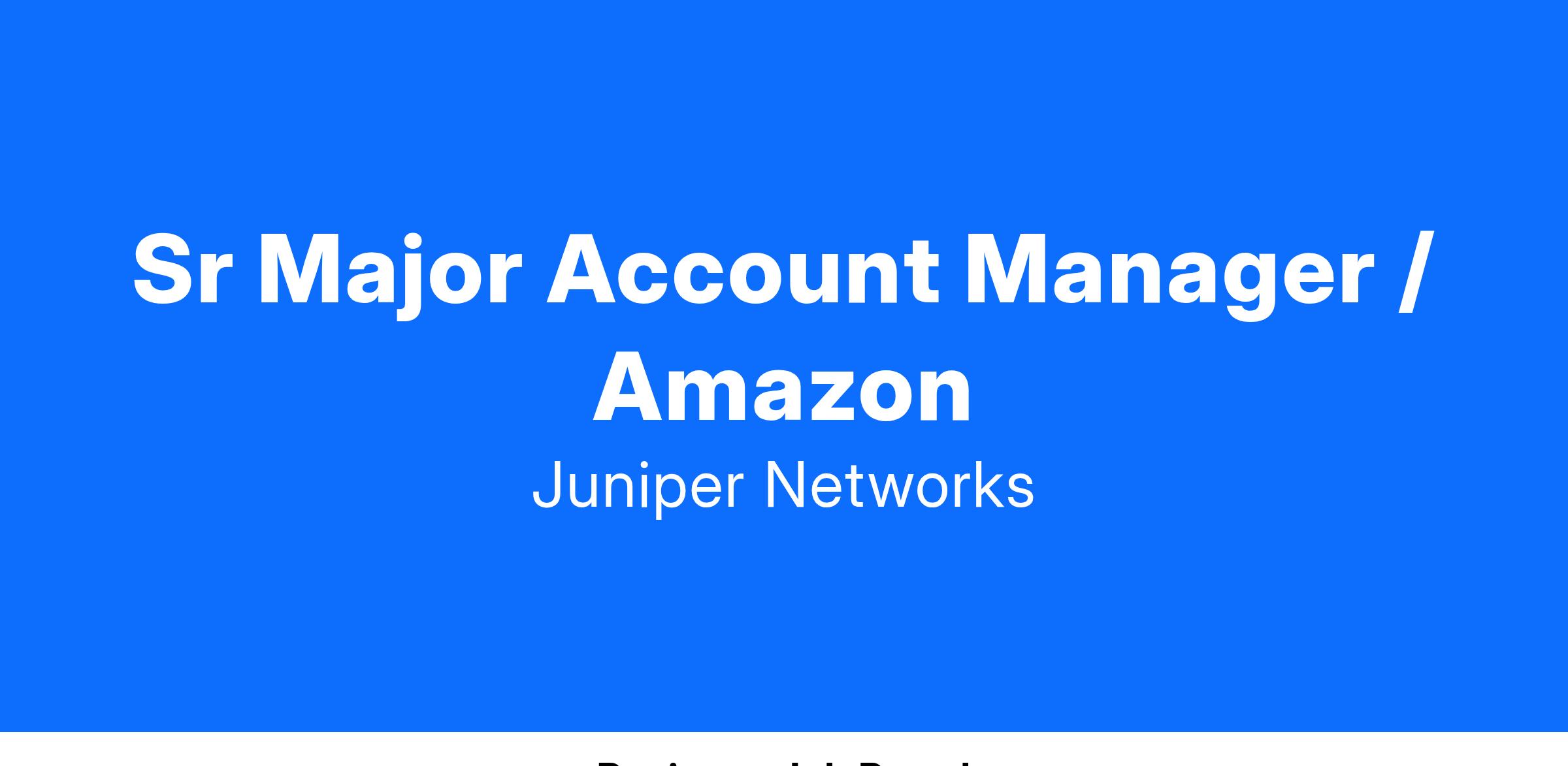 Come join Juniper Networks Cloud Team! The Senior Major Account Manager (MAM) is responsible for growing sales and developing relationships with Amazon. We are looking for someone who will think big and make an impact. The MAM will build, develop, and execute a strategic account plan with the sales team to grow Juniper business. They will also work closely and align with their sales peers, systems engineering, customer service, sales operations, and other Juniper and customer teams.