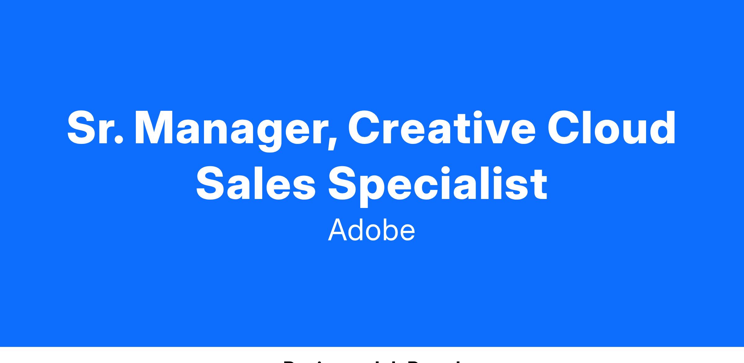 Available to travel 50% Adobe believes in hiring the very best and that’s why our dynamic working environment has received awards throughout the globe