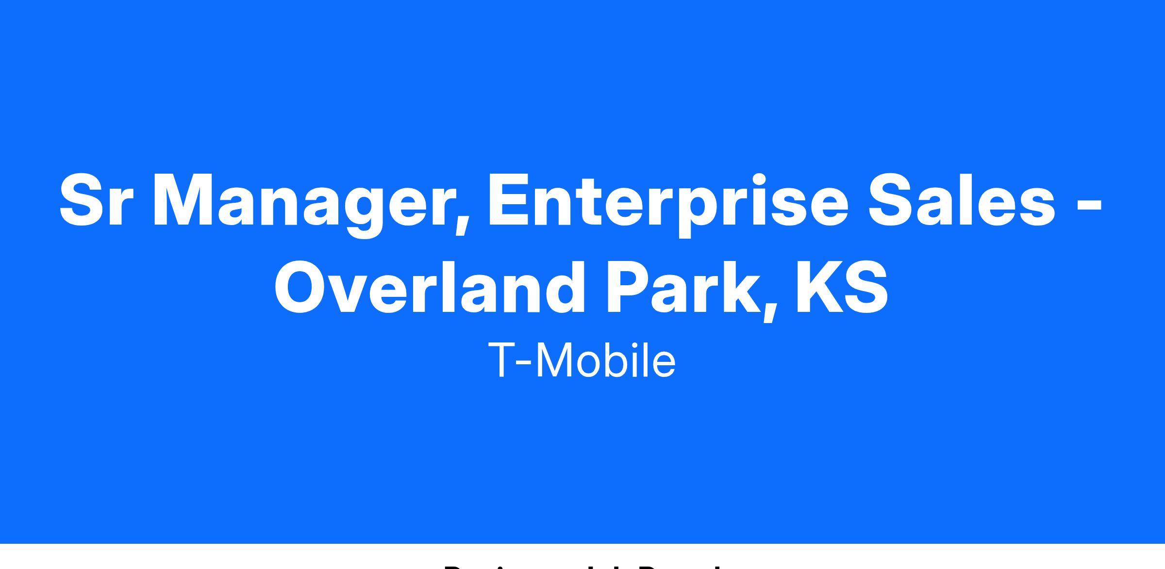 Job OverviewWe're seeking a dynamic and seasoned Sales Leader to guide our team of Enterprise Client Partners in securing business from Fortune 1000 companies. You'll play a pivotal role in driving wireless voice & data services sales, the Internet of Things (IoT), and innovative T-Mobile Network solutions.