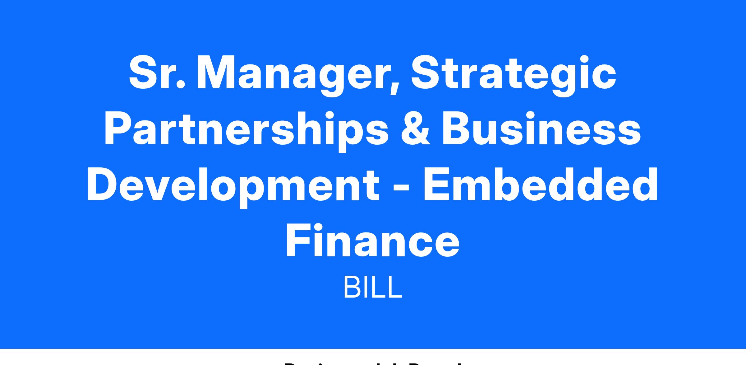 As the Senior Manager, Strategic Partnerships & Business Development, you will be a key player in shaping the partnerships that fuel our growth and impact. You'll be part of a dynamic team that thrives on collaboration, creativity, and a shared commitment to making financial processes smoother for businesses. You will forge new strategic partnerships leveraging BILL's embedded AP & payments technology, expanding our ecosystem and contributing to our mission of creating a more connected and efficient financial world.